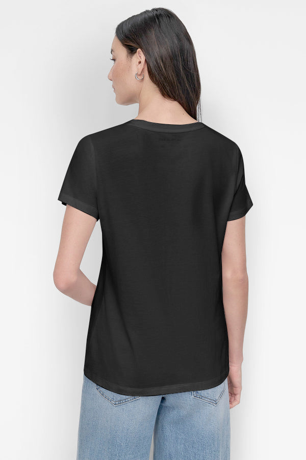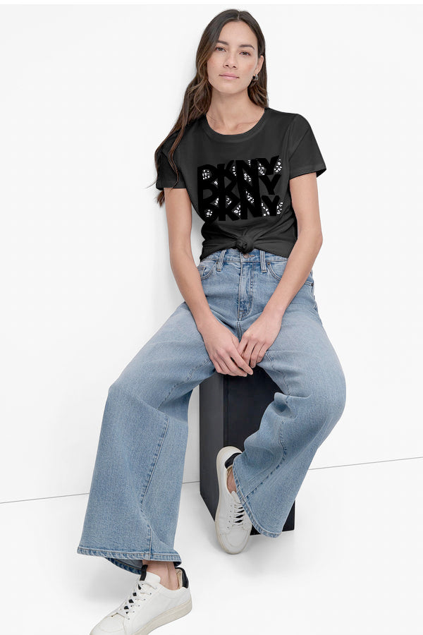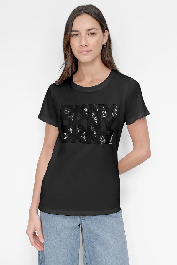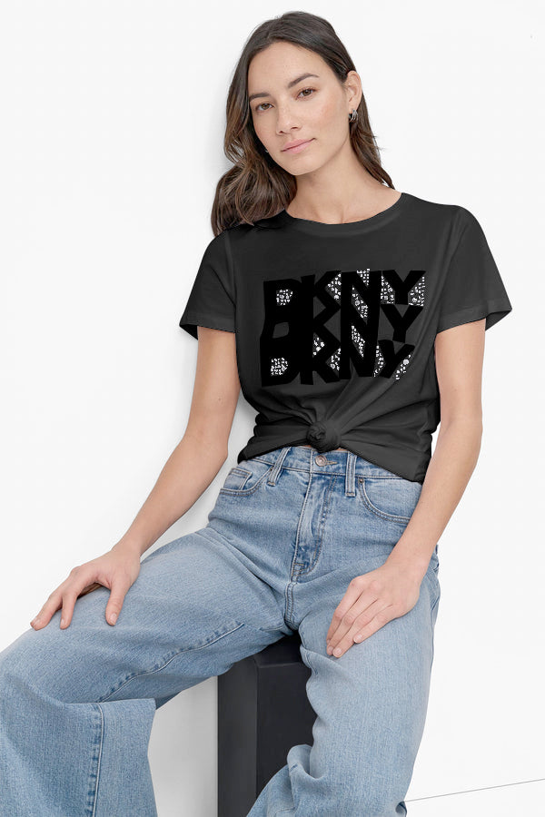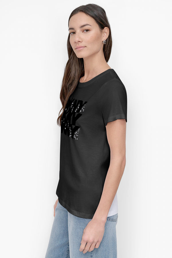 أضفي لمسة من الأناقة إلى خزانة ملابسك مع تي شيرت دكني المرصع بأحجار الراين. يتميز هذا التي شيرت الأسود بزخارف أحجار الراين البراقة، حيث يمزج بين الشعور بالراحة اليومية والأناقة الراقية، ما يجعله مثالياً للارتداء مع الجينز أو تحت سترة رسمية ليمنحك إطلالة أنيقة.
