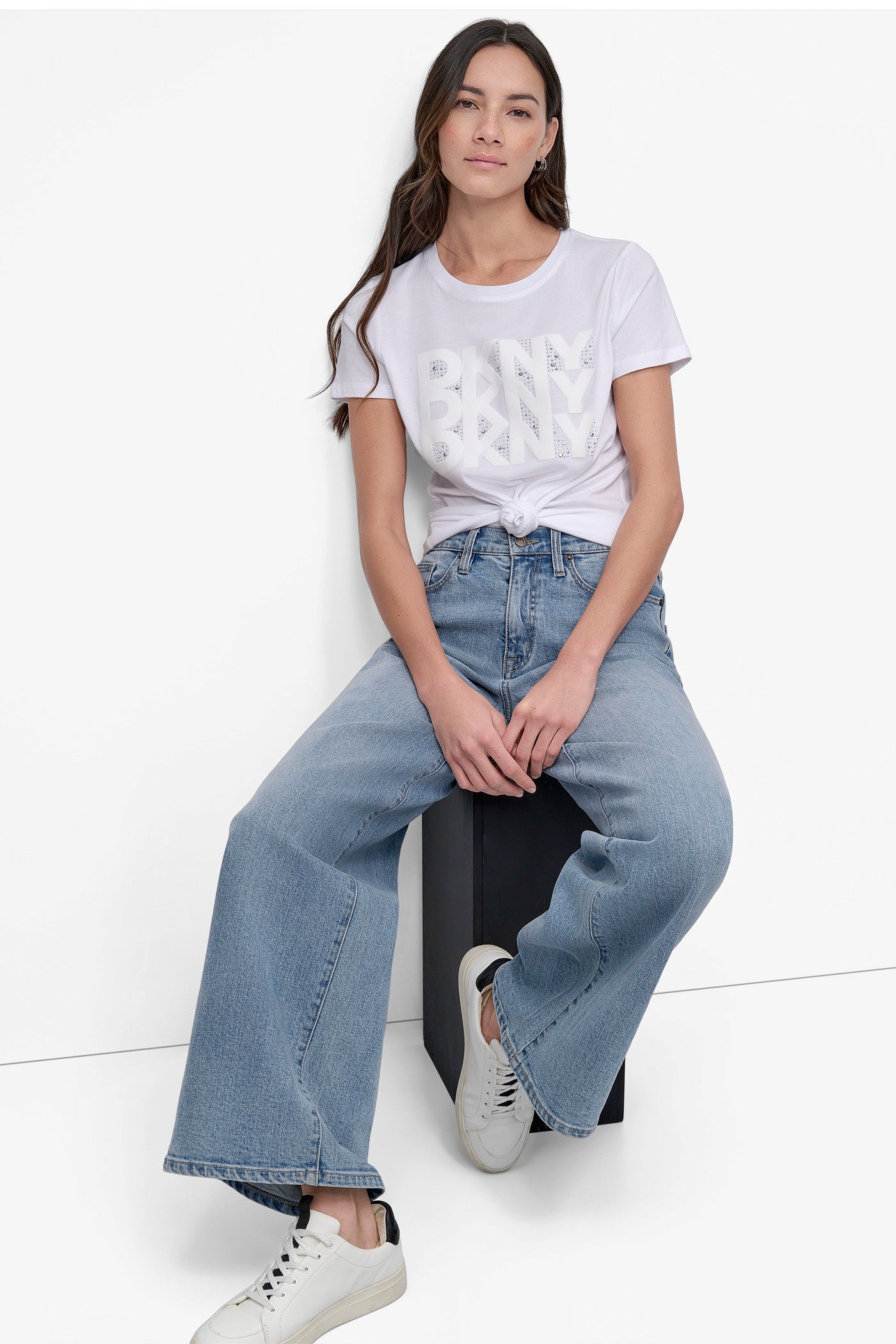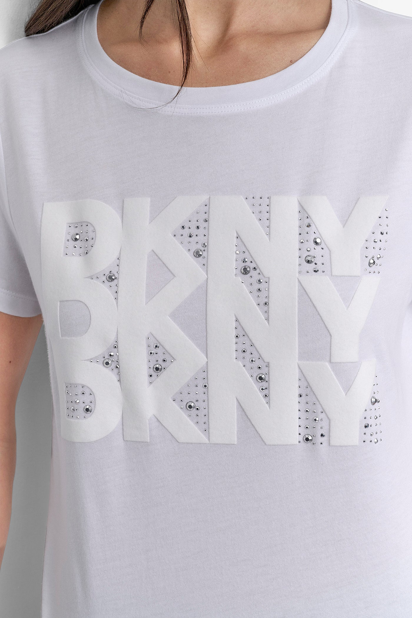 ارتقِ بإطلالتك الكاجوال مع تي شيرت دكني المرصع بأحجار الراين باللون الأبيض الكلاسيكي. يتميز هذا التي شيرت الناعم والمريح بشعار دكني المرصّع بأحجار الراين اللامعة، ويمزج بسلاسة بين الرقي والتألق، مما يجعله قطعة أساسية رائعة لا غنى عنها في خزانة ملابسك العصرية.