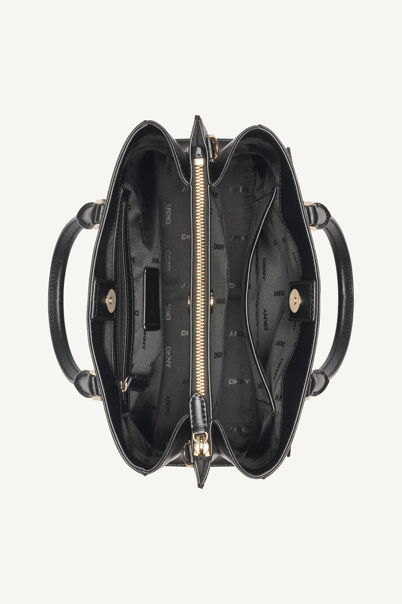 تُضفي حقيبة براينت أفينيو ساتشيل صغيرة الحجم الأنيقة والرائعة باللون الأسود الكلاسيكي لمسةً عصريةً لا تتأثر بمرور الزمن. تتميز هذه الحقيبة بمقابض علوية وتصميم أنيق، وحجم مثالي لحمل أغراضك الأساسية، مما يجعلها الرفيقة المثالية طوال اليوم ليلاً ونهاراً.