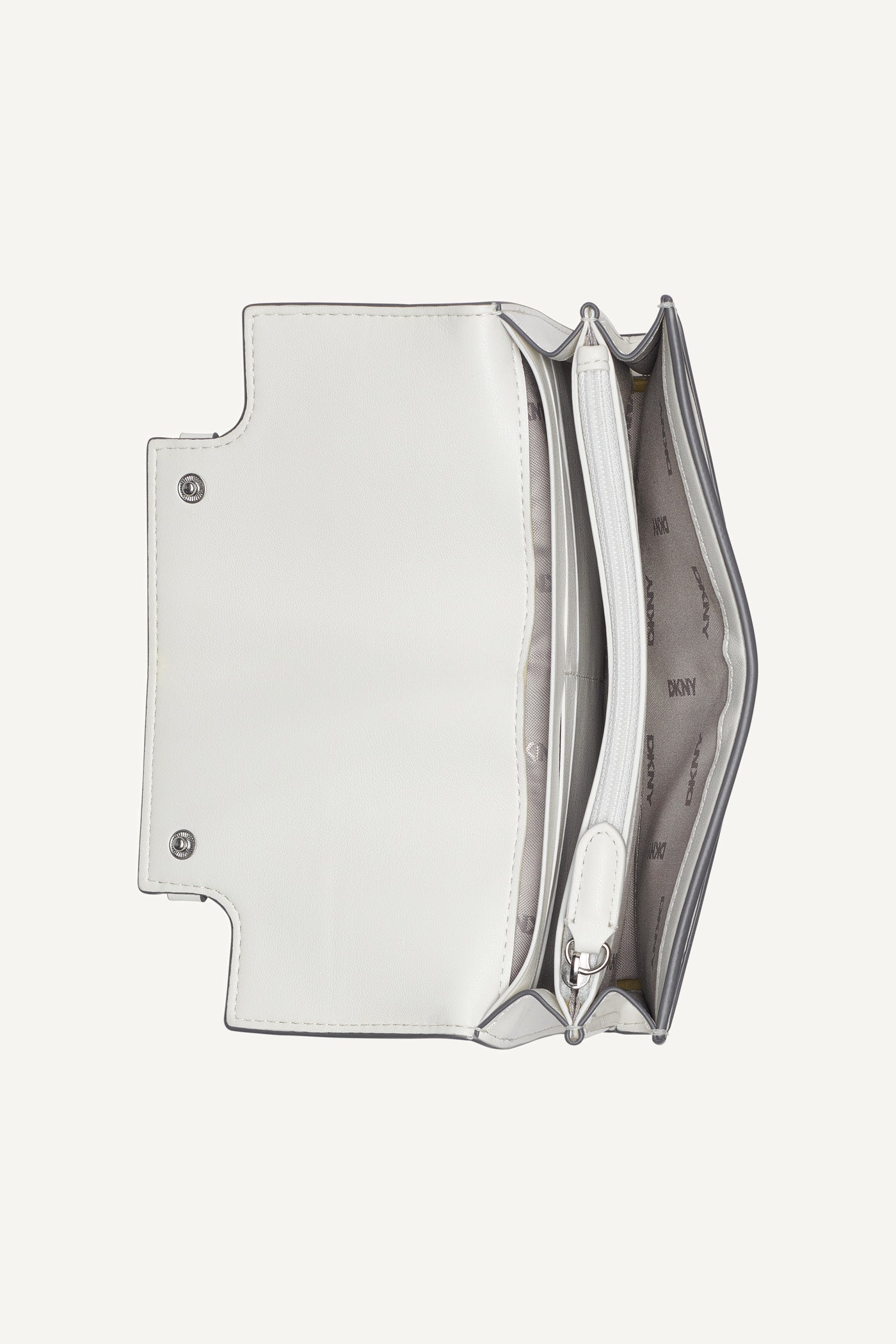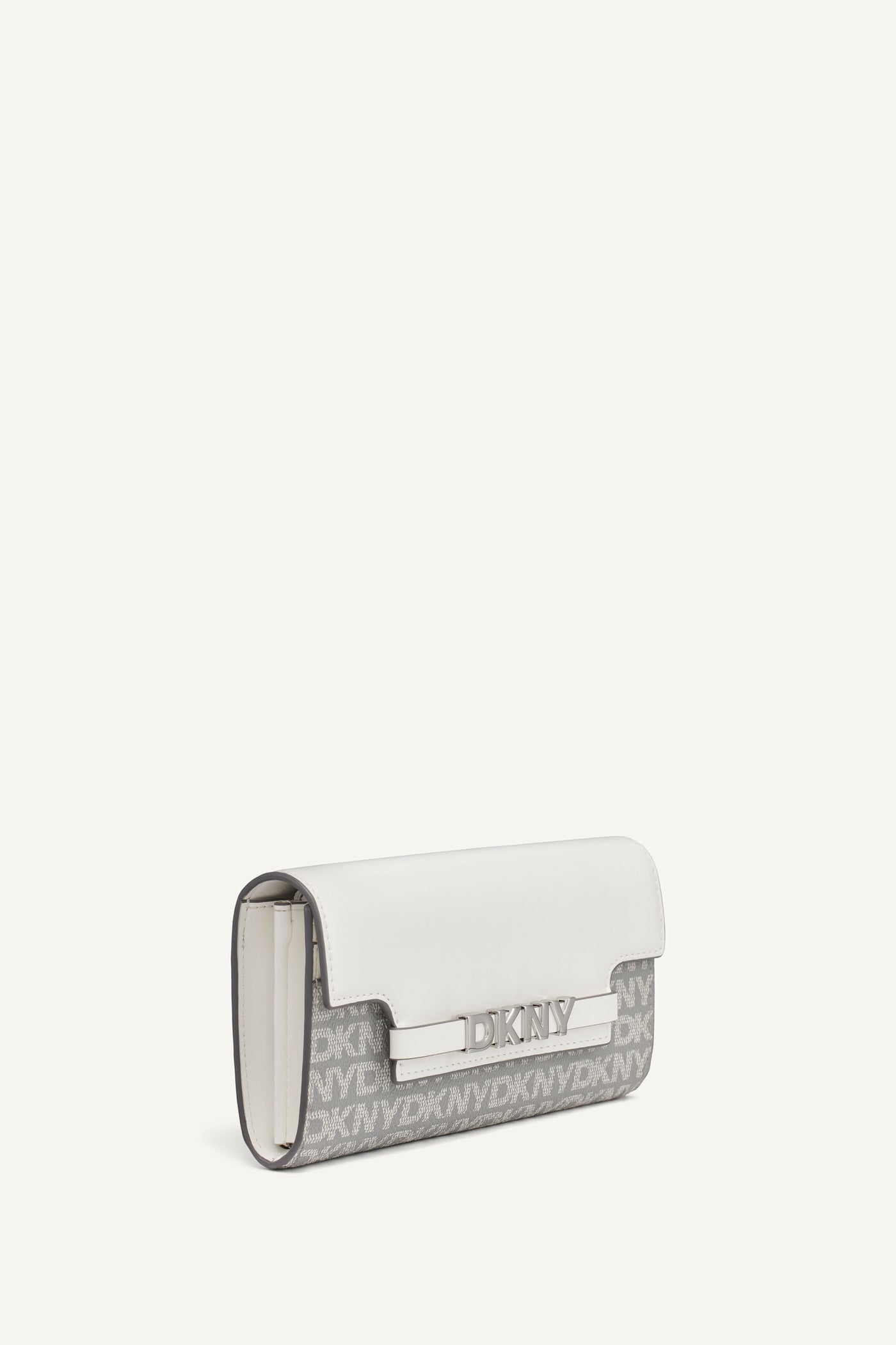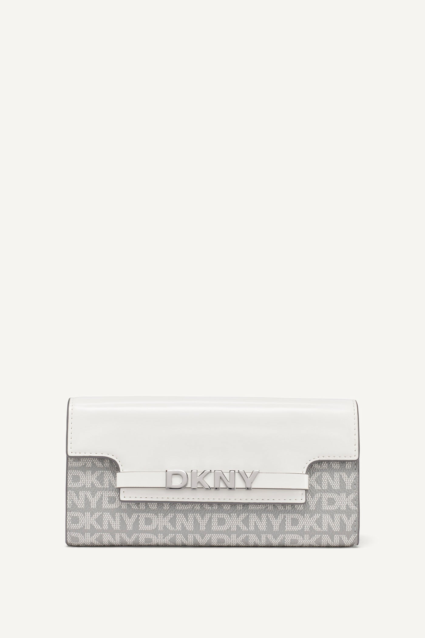 تم تصميم محفظة محفظة أفريل ثلاثية الطي بعناية فائقة باستخدام خامات عالية الجودة من 100% بولي فينيل كلورايد (PVC) مع لمسات نهائية من البولي يوريثان (PU)، وتتميّز بنقشة شعار DKNY الكلاسيكية التي تغطيها بالكامل لإضفاء مظهر أنيق ومميز.