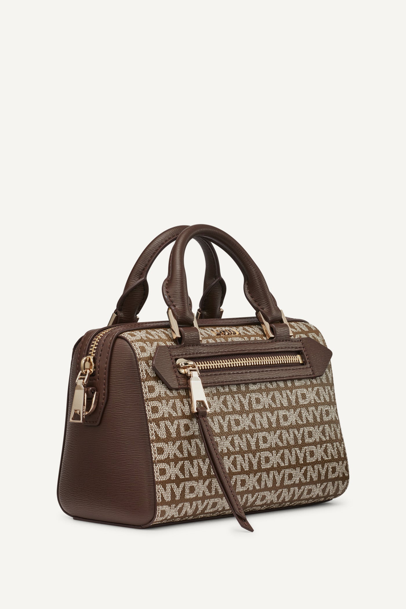 The DKNY Bryant Ave Small Duffle Bag in brown exudes sophistication with its sleek design and versatile functionality. Ideal for daily use, it boasts ample space and stylish detailing, making it a perfect accessory for both casual and formal occasions.