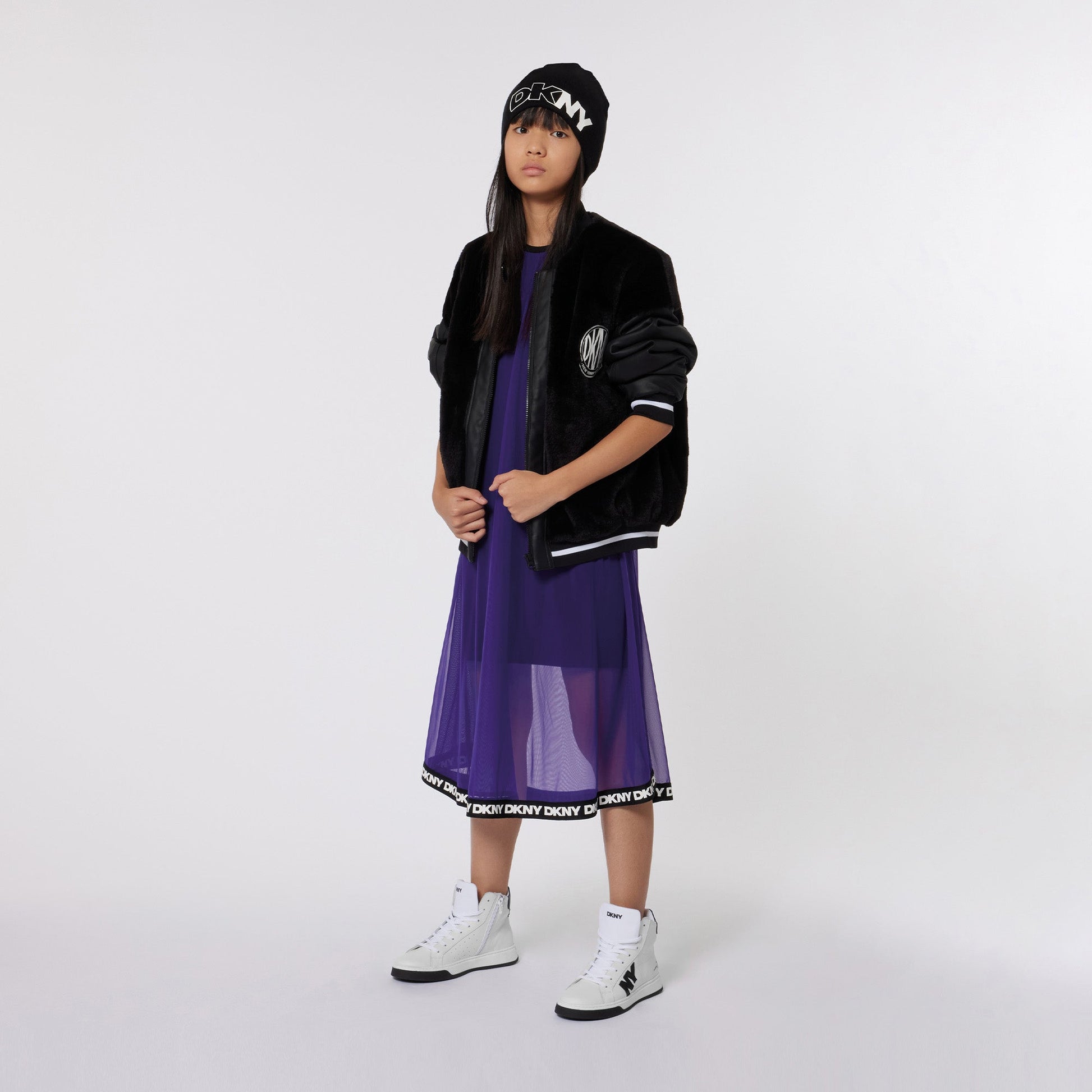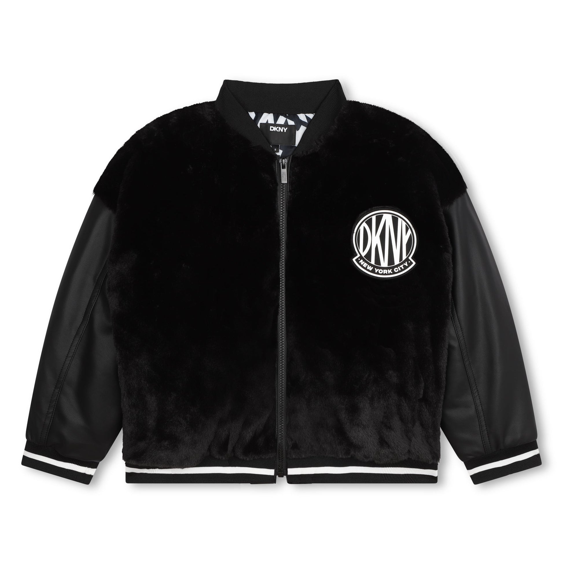 ارتقِ بأناقتك مع سترة بومبر بأكمام طويلة باللون الأسود الكلاسيكي من دكني. تتميز هذه القطعة الرائعة بتفاصيل شعار أنيقة، وتمزج بسلاسة بين الأناقة والعملية. قطعة مثالية للارتداء مع ملابس أخرى، حيث تضمن الراحة دون التنازل عن الرقي. قطعة أساسية في خزانة الملابس.