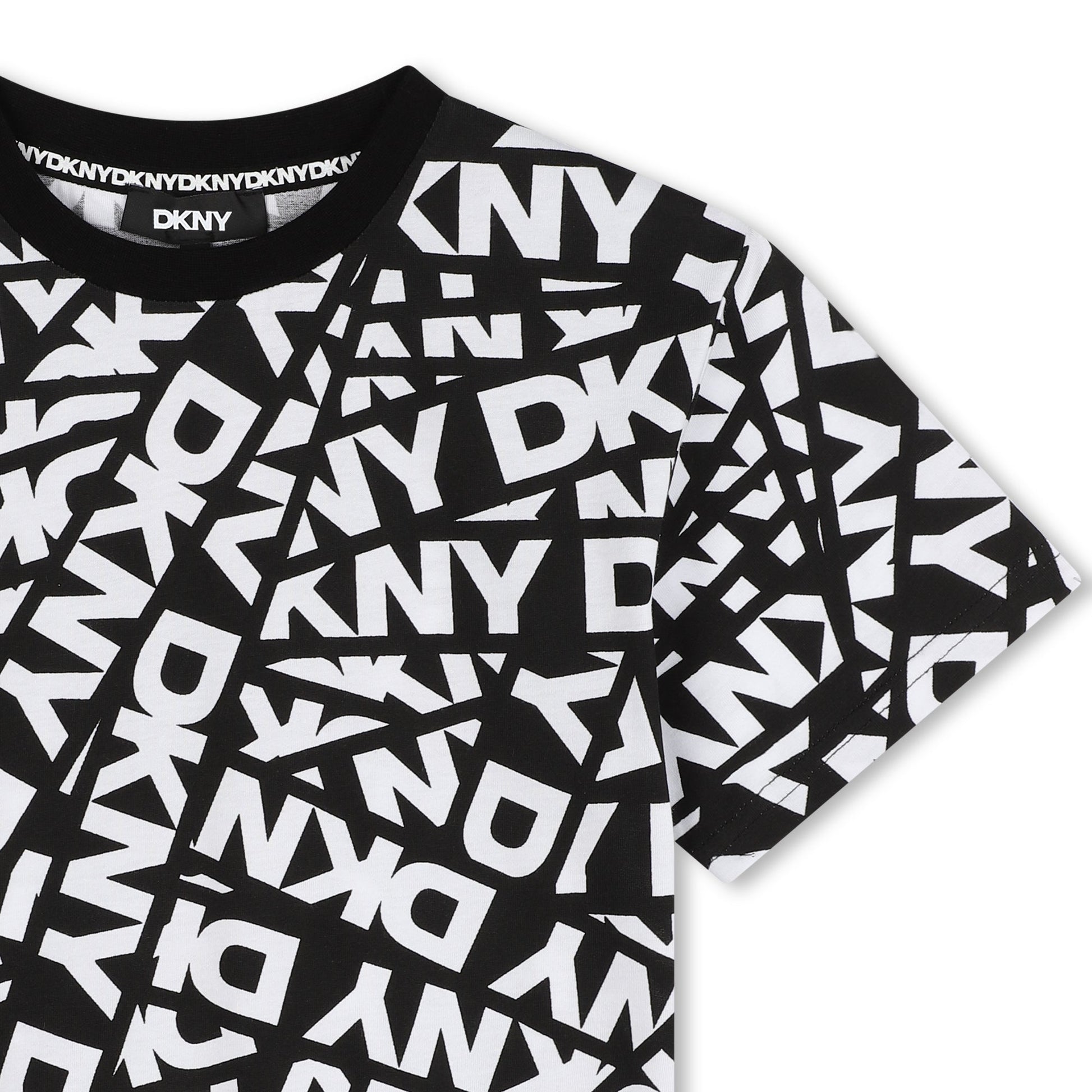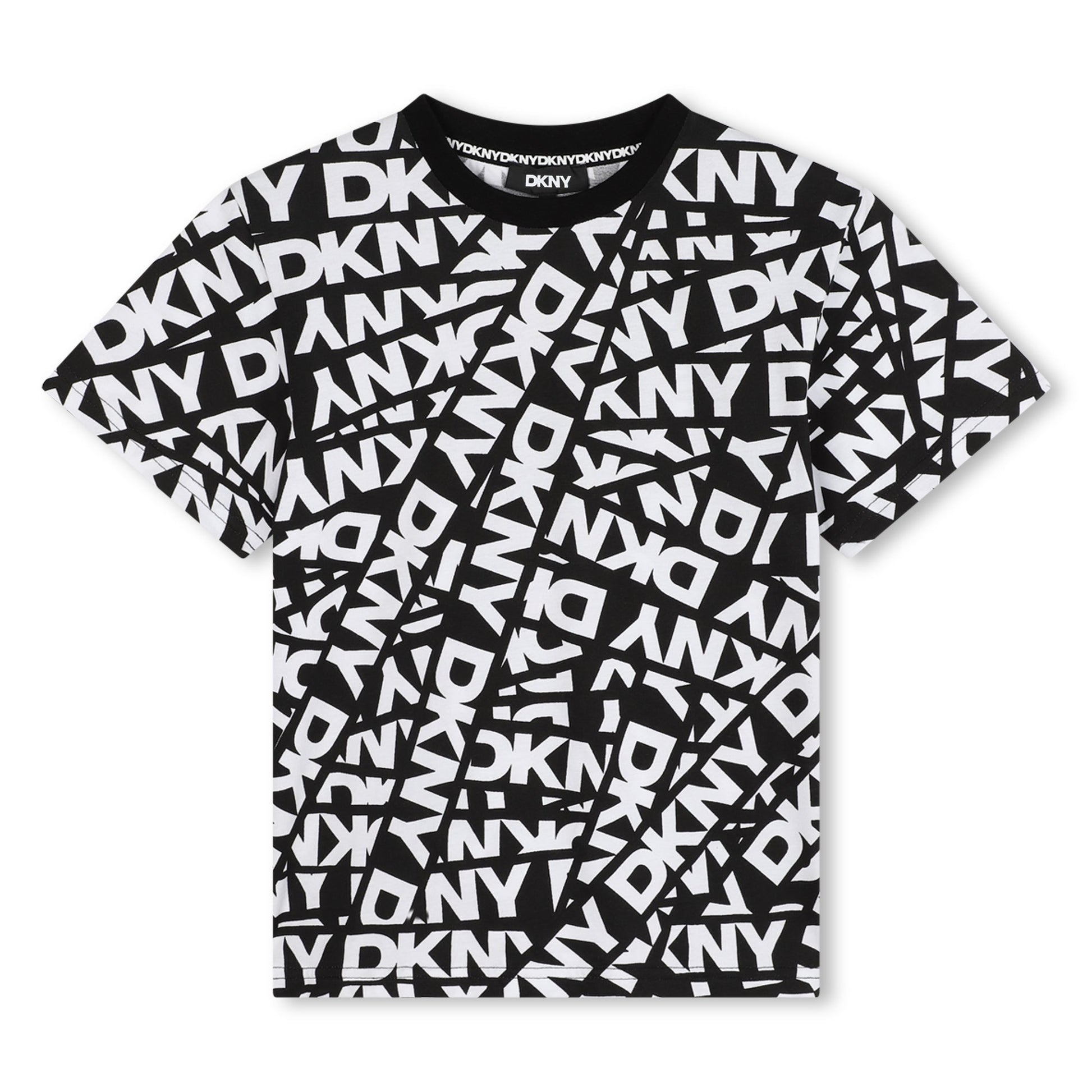 تي شيرت بأكمام صغيرة ورقبة دائرية مع شعار