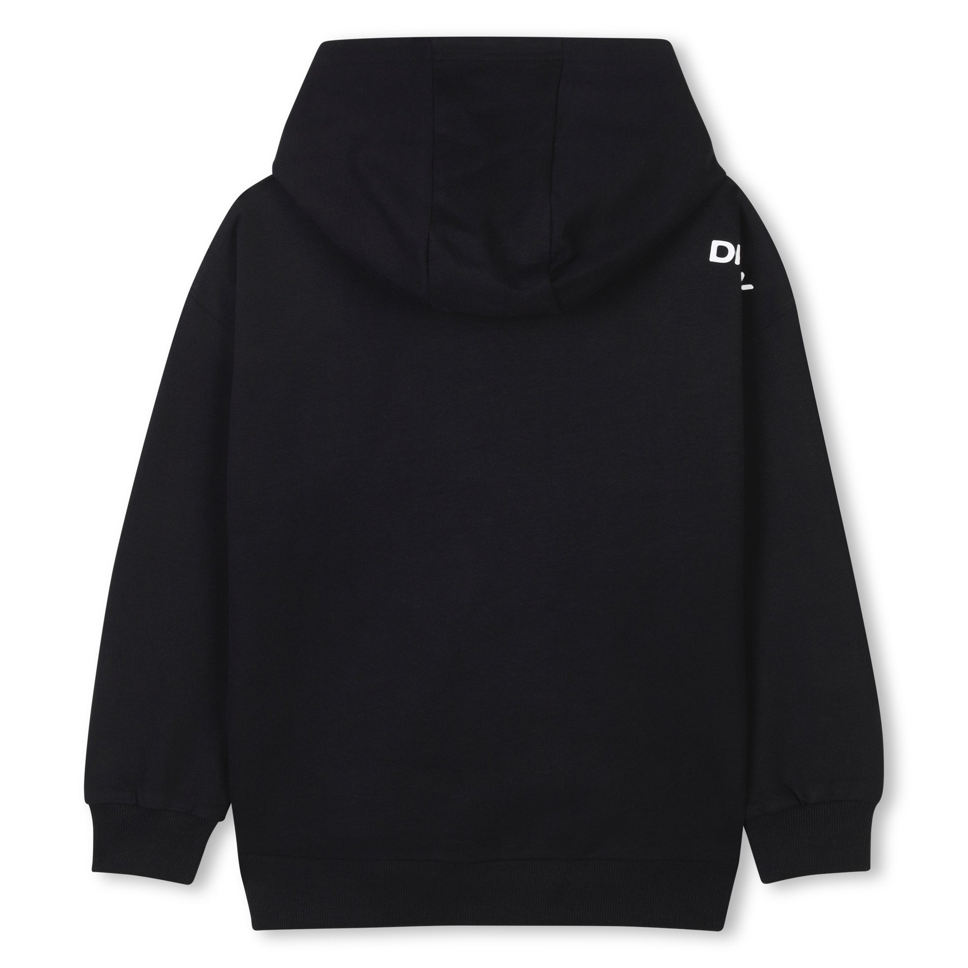 سترة هودي من قطن تيري الفرنسي. جيب في الأمام. تتميز هذه السترة بطبعة بارزة لشعار العلامة التجارية مستوحاة من مجموعة ملابس الكبار في الأمام، وطبعة في الخلف.