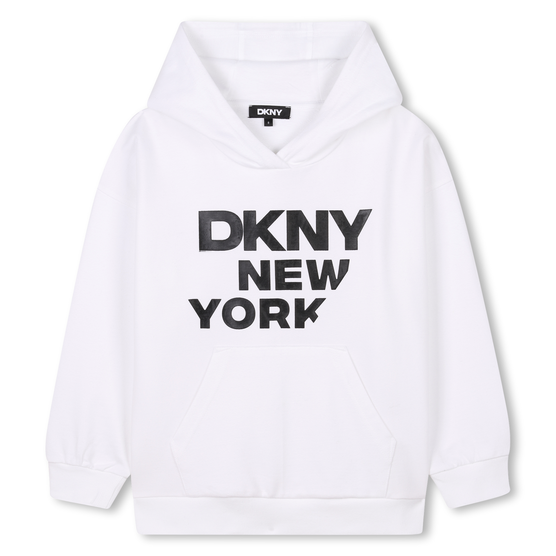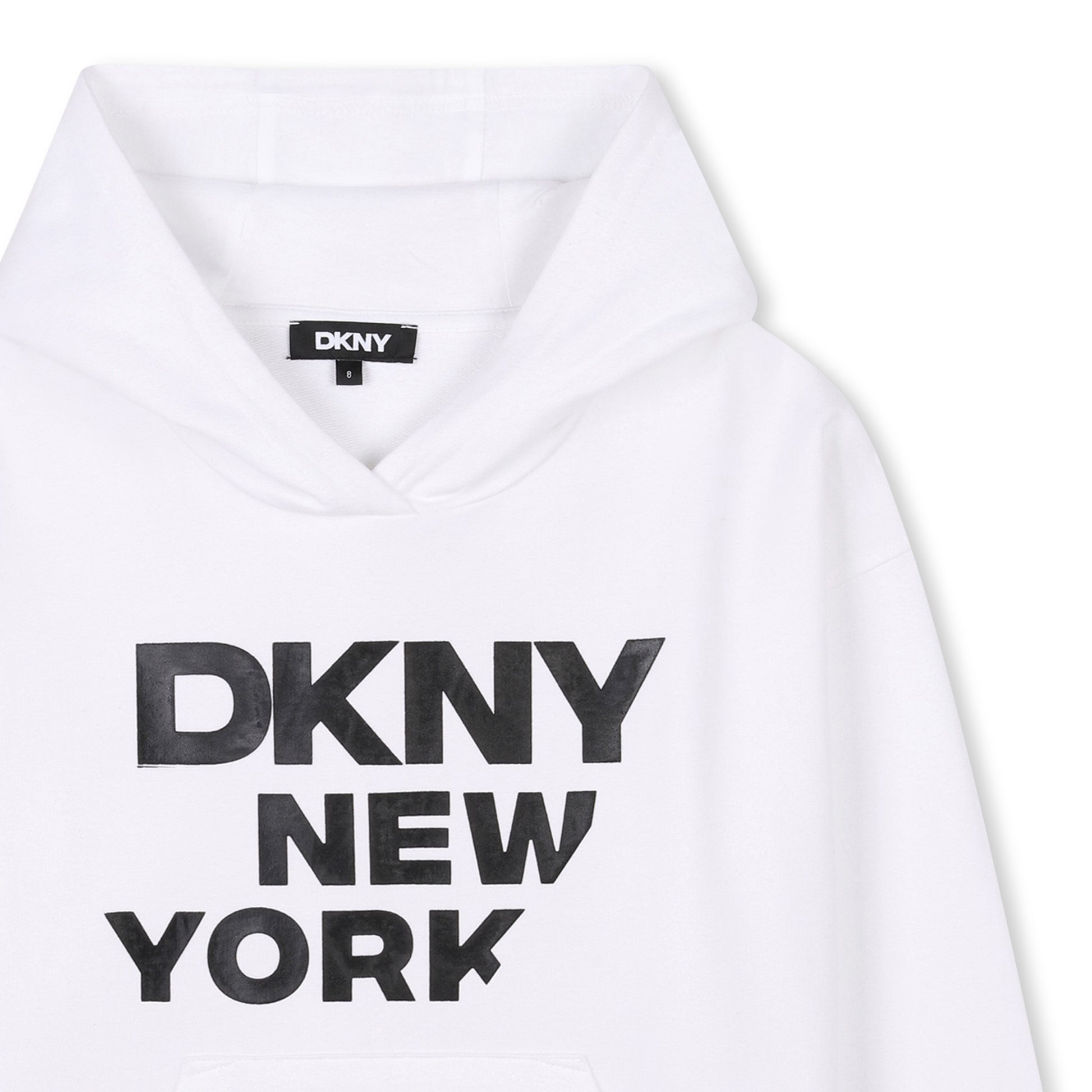 سترة هودي من قطن تيري الفرنسي. جيب في الأمام. تتميز هذه السترة بطبعة بارزة لشعار العلامة التجارية مستوحاة من مجموعة ملابس الكبار في الأمام، وطبعة في الخلف.