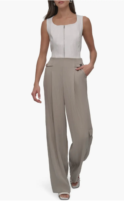 حسّني خزانة ملابسك الكاجوال مع بنطال كارغو WTHRD Twill من DKNY باللون البيج متعدد الاستخدامات. يتميز هذا البنطال الأنيق بجيوب عملية وقصة عصرية، تجمع بين العملية والأناقة العصرية. مثالي لإطلالة عصرية مريحة تنبض بالأناقة دون عناء.