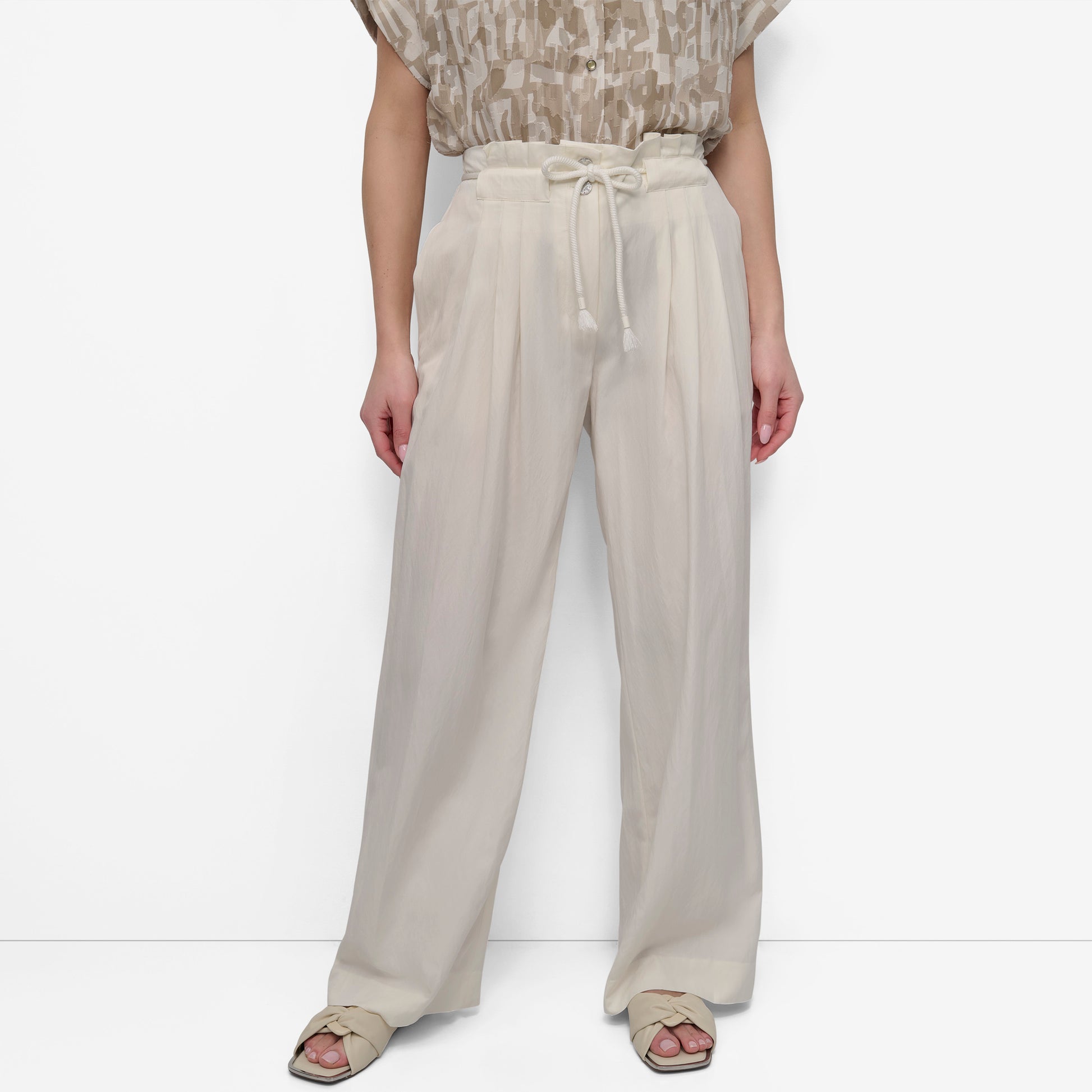 Crafted from a premium blend of 85% rayon and 15% nylon, these DKNY rope tie front wide leg pants offer exceptional comfort and durability. Designed with a flattering wide leg cut and an adjustable rope tie waist, they provide a sophisticated yet relaxed silhouette ideal for both work and casual settings. Elevate your wardrobe with these versatile pants that balance style and functionality expertly.