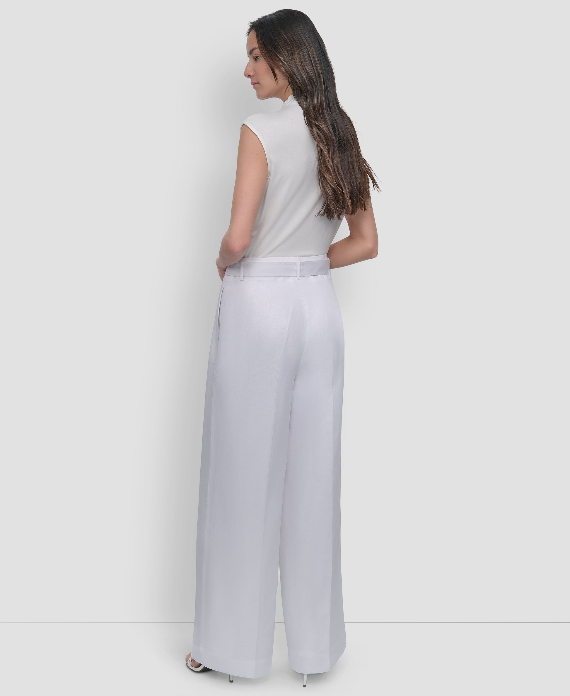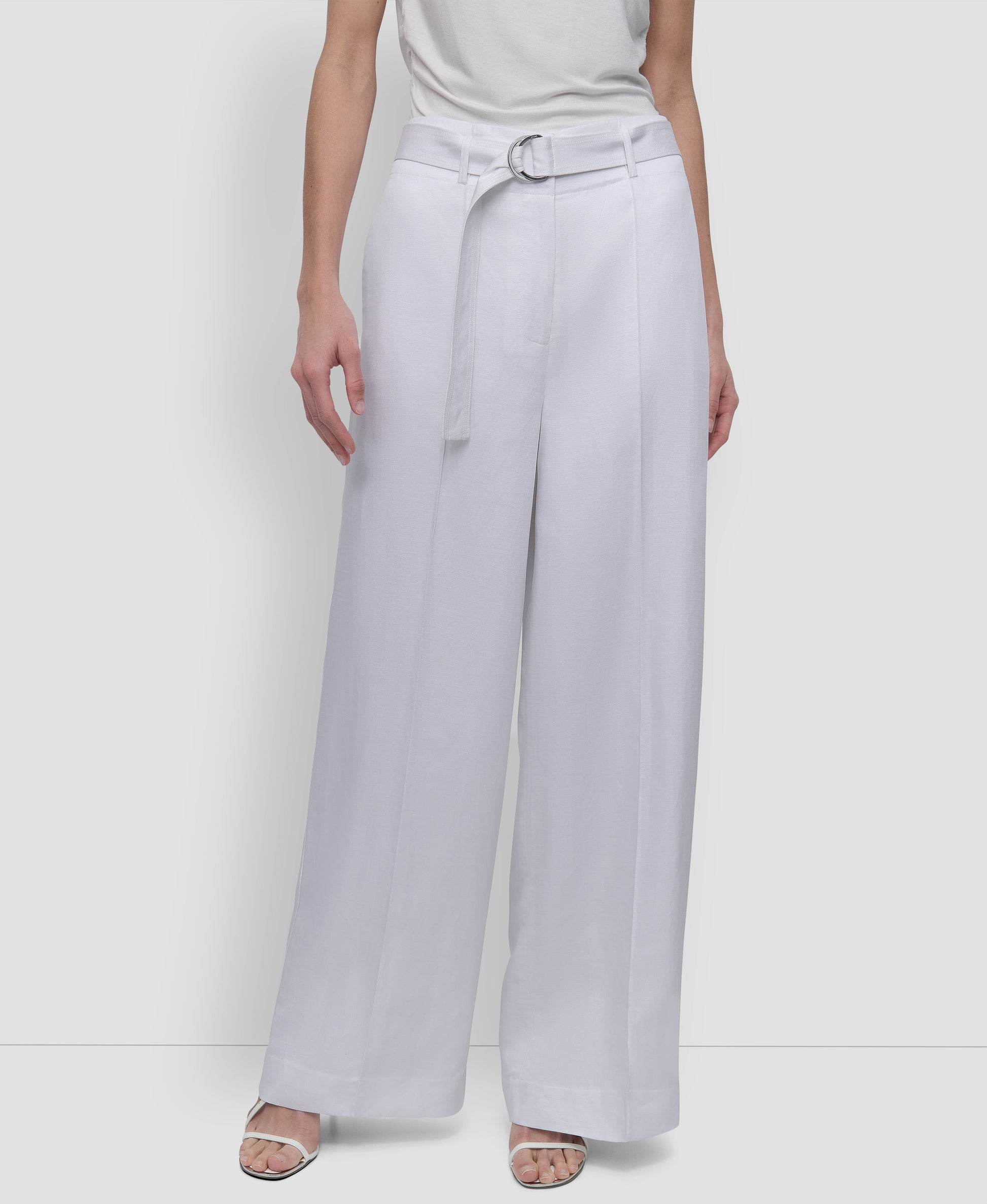 حسّني خزانة ملابسك مع بنطال DKNY واسع الساقين بحزام باللون الأبيض الناصع. يتميز هذا البنطال الأنيق بتصميم أنيق واسع الساقين، ويأتي مع حزام أنيق، ليمنحكِ مزيجًا مثاليًا من الأناقة العصرية والرقي الخالد، مناسبًا لأي مناسبة.