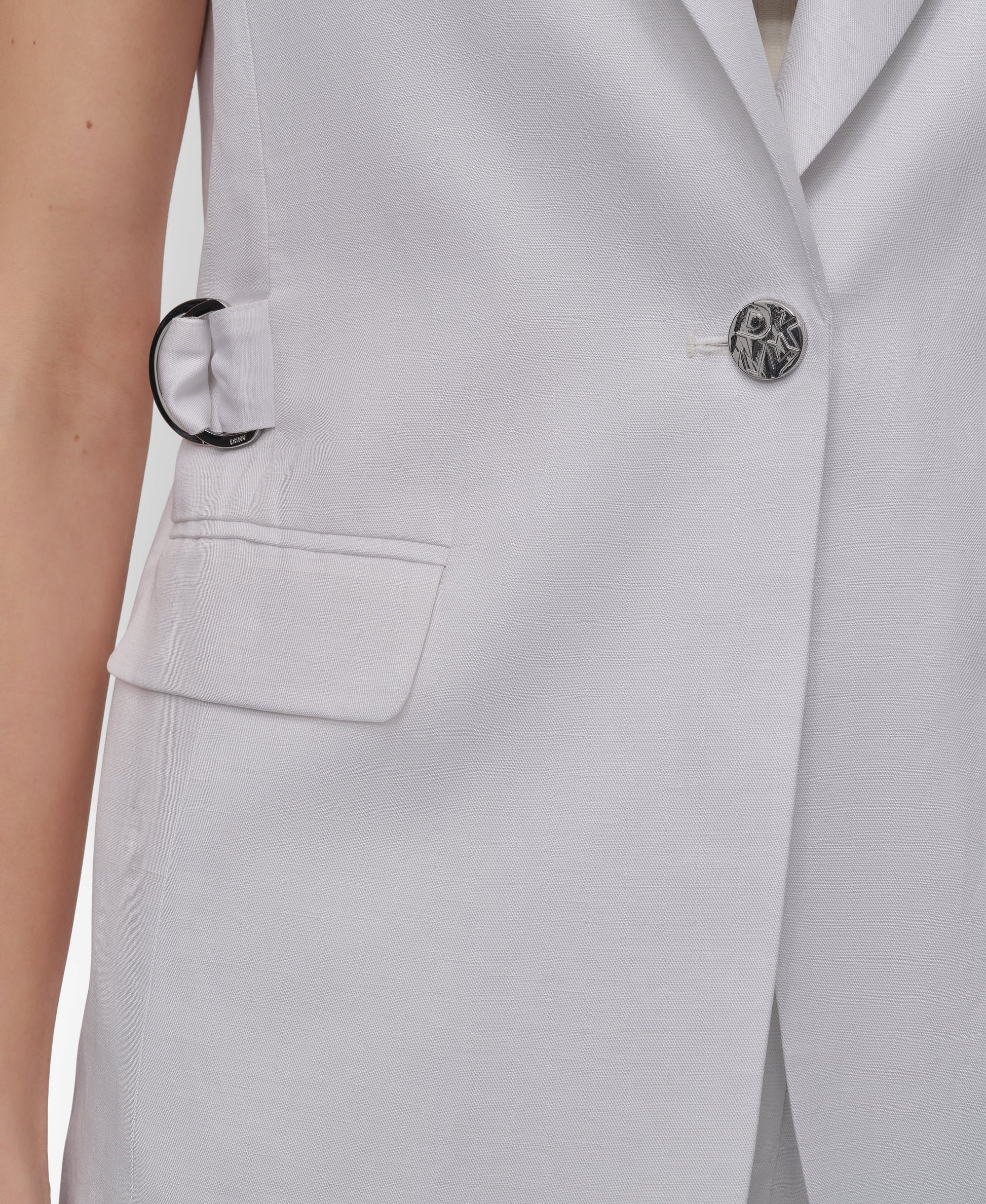 عززي خزانة ملابسكِ مع سترة DKNY D-Ring المزودة بحزام باللون الأبيض الكلاسيكي. هذه القطعة متعددة الاستخدامات، مثالية للارتداء فوق بعضها، بتصميم أنيق وتفاصيل حزام أنيقة، تجمع بسلاسة بين الرقي والأناقة العصرية لإطلالة أنيقة وراقية.