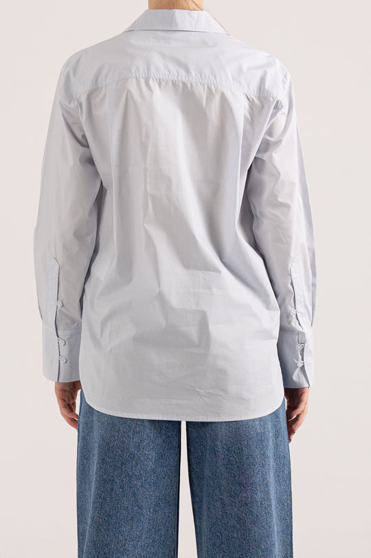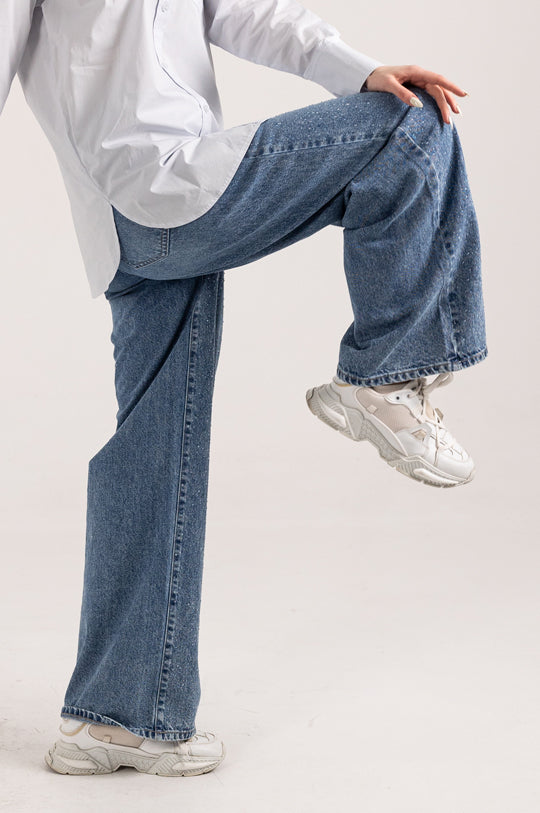 ارتقِ بخزانة ملابسك خلال العطلات مع قميص بأكمام طويلة وأزرار أمامية من دكني باللون الأزرق المذهل. صُمم هذا القميص ليمنحك الأناقة والراحة، ويتميز بشعار مبهر مرصع بأحجار الراين، ويعد مثالياً للمناسبات الاحتفالية. اتركي انطباعًا رائعًا هذا الموسم.