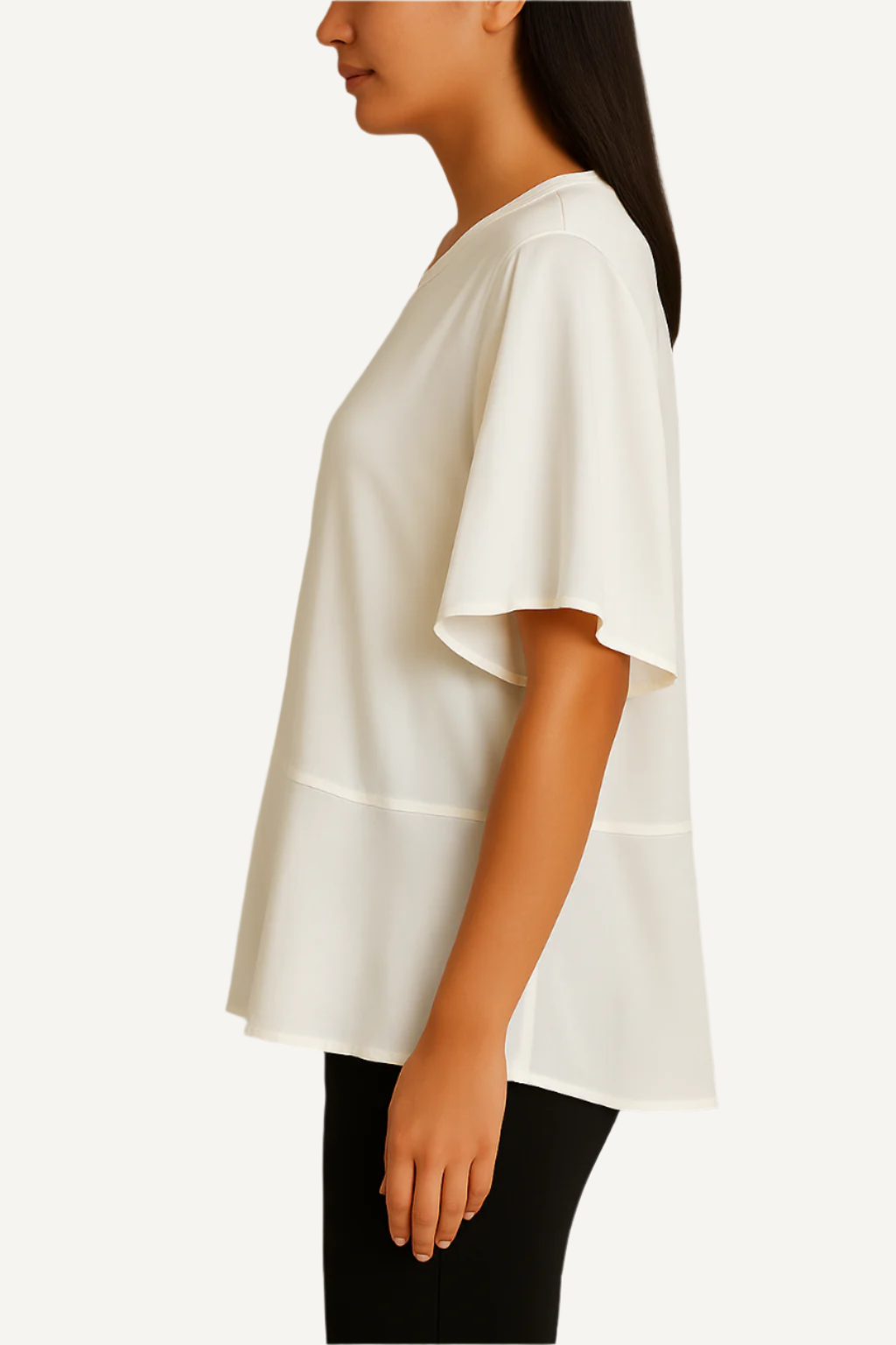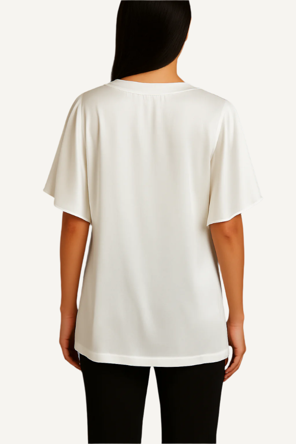 حسّني خزانة ملابسكِ مع بلوزة DKNY ذات الأكمام المنسدلة والأزرار الأمامية باللون الأبيض الناصع. هذه القطعة متعددة الاستخدامات تنتقل بسلاسة من أناقة المكتب إلى أناقة المساء، بأكمامها المنسدلة الرقيقة وتصميمها الكلاسيكي بأزرار أمامية لإطلالة راقية خالدة في أي مكان.