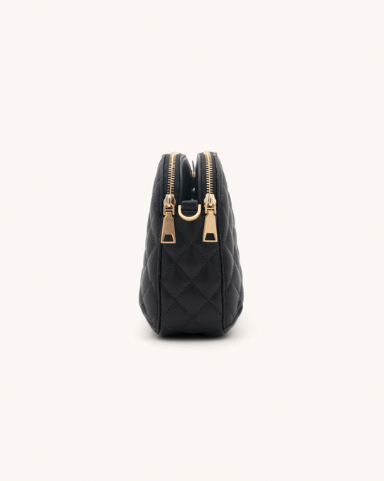 ارتقِ بأناقتك مع حقيبة الكاميرا الصغيرة ترينا بسحاب مزدوج من دكني. تتميز هذه الحقيبة الصغيرة بتصميم أنيق ومتعدد الاستخدامات باللون الأسود، وتتميز بجيبين آمنين بسحاب، ما يُوازن بين العملية والأناقة في أي مناسبة. إنها قطعة أساسية لعاشقات الموضة العصريات.