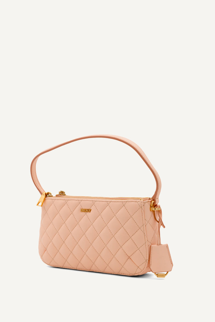 عززي أناقتكِ مع حقيبة ترينا كروس بودي الصغيرة بسحاب مزدوج من دكني بلونها الخوخي الأخّاذ. مثالية للأناقة أثناء التنقل، بتصميمها المدمج المزود بسحابين لتنظيم الأغراض، مما يجعلها إكسسوارًا مثاليًا لأي مناسبة.
