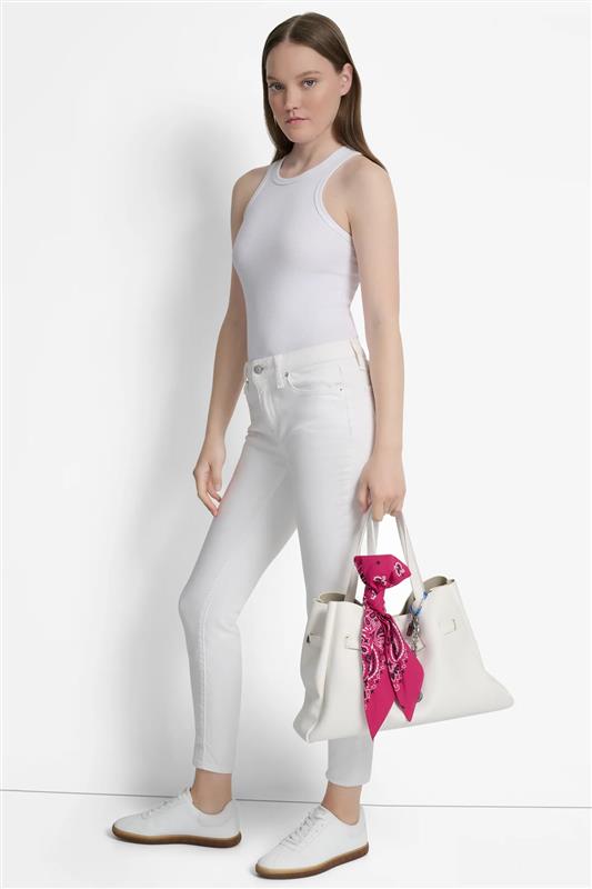 ارتقي بأناقتك مع حقيبة دكني براير ساشتيل بدلاية كبيرة الحجم باللون الأبيض الأنيق. تتميز هذه الحقيبة الواسعة بمقبض علوي، ودلاية جذابة، وهيكل متين، وتفاصيل راقية، مما يجعلها الإكسسوار المثالي الراقي للارتداء اليومي وفي المناسبات الخاصة.