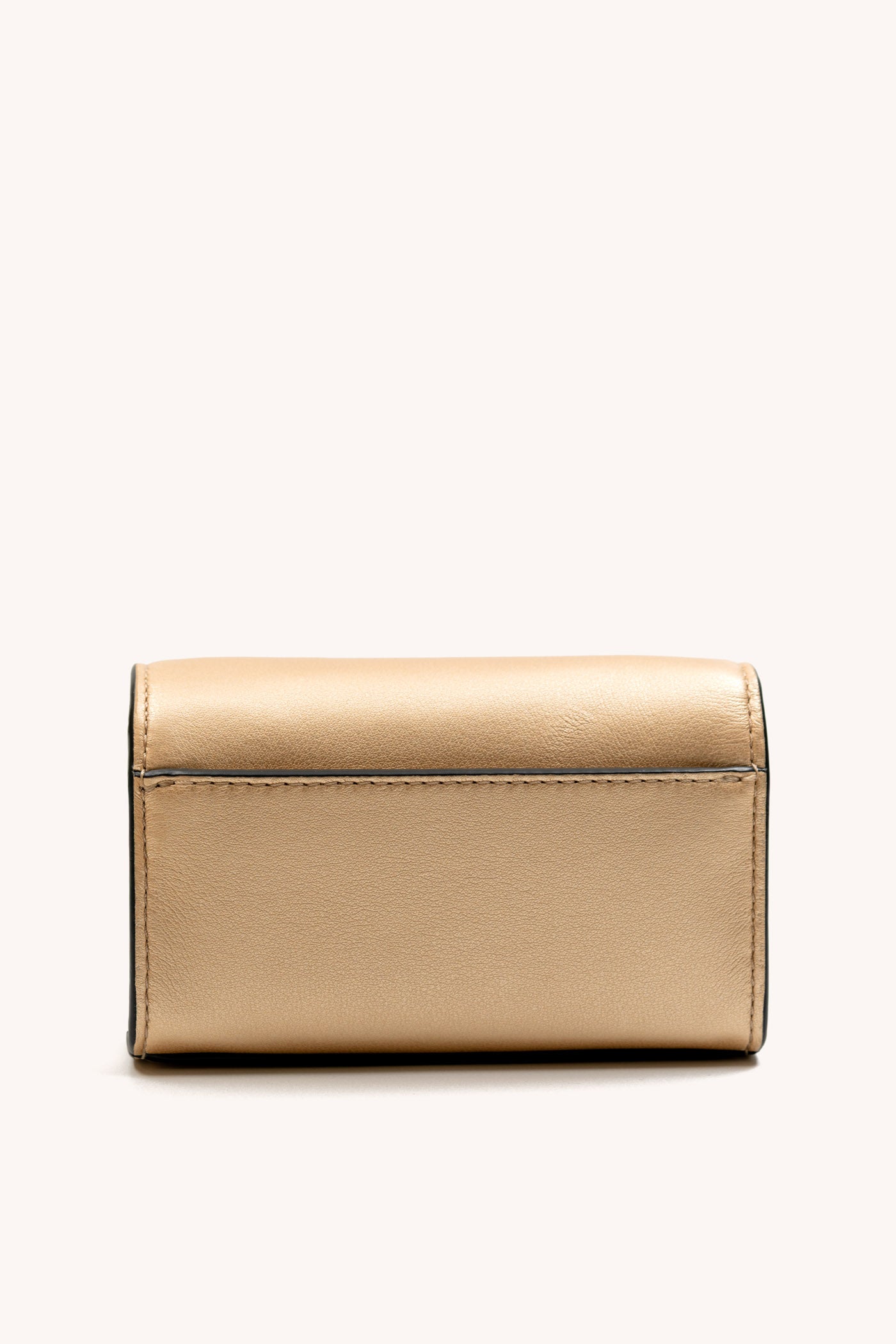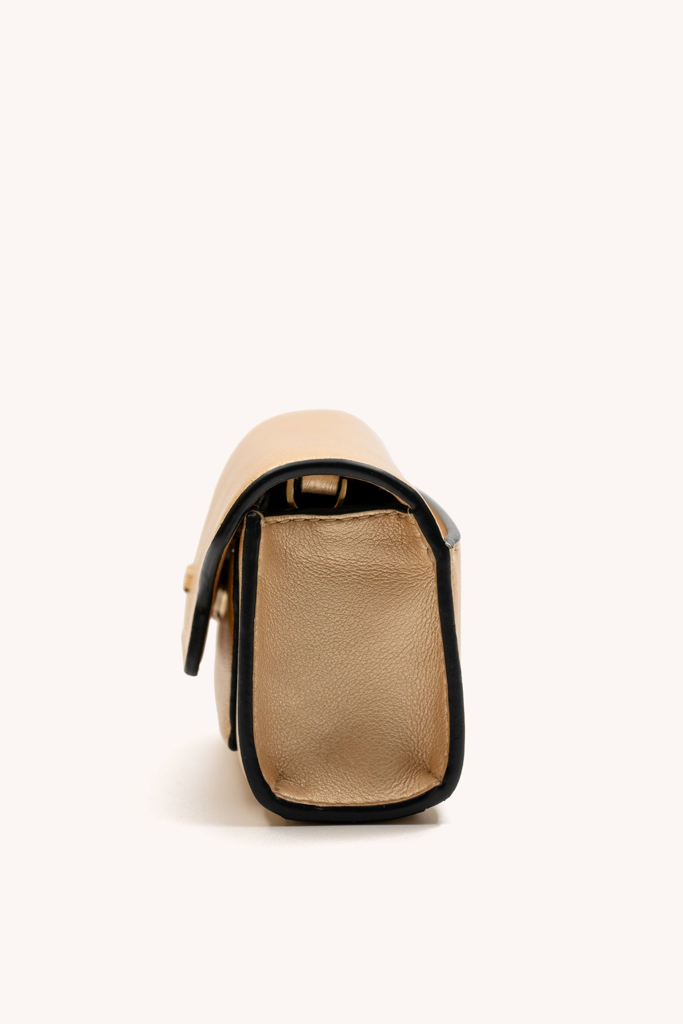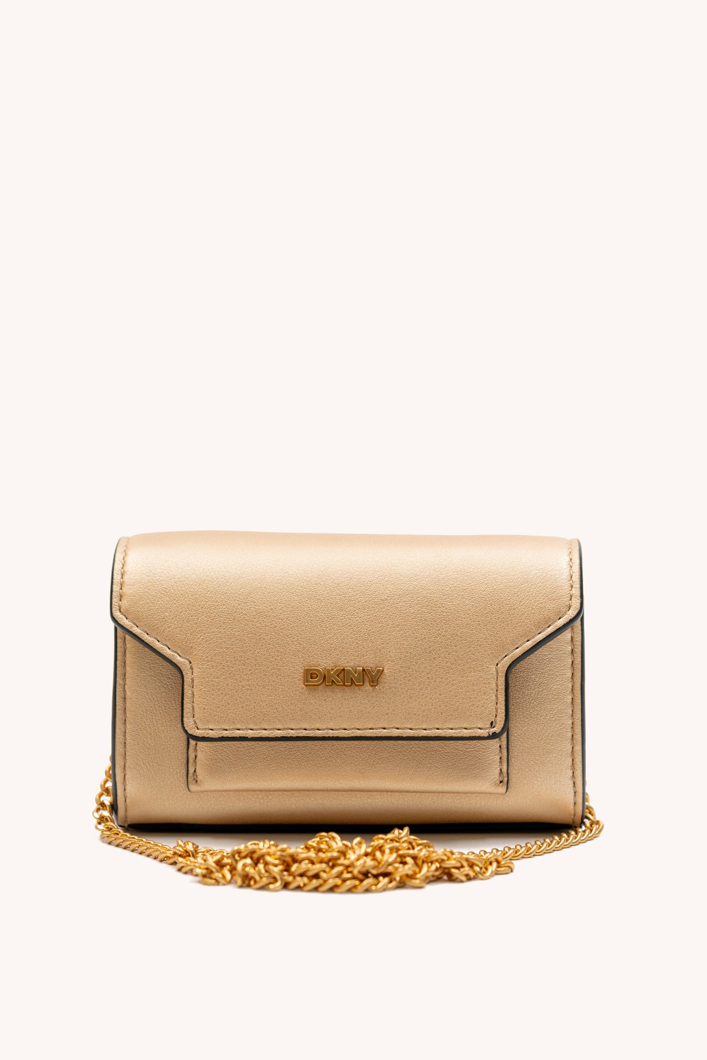 ارتقِ بإطلالتكِ مع حقيبة دكني ميلي مايكرو كروس بودي بغطاء قلاب باللون الذهبي اللامع. تتميز هذه الحقيبة بتصميم كروس بودي أنيق صغير الحجم، وغطاء قلاب أنيق، ولمسة نهائية معدنية فاخرة، وحزام قابل للتعديل، وهي مثالية لحمل أغراضكِ الأساسية مع إضافة لمسة من الأناقة على أي إطلالة.