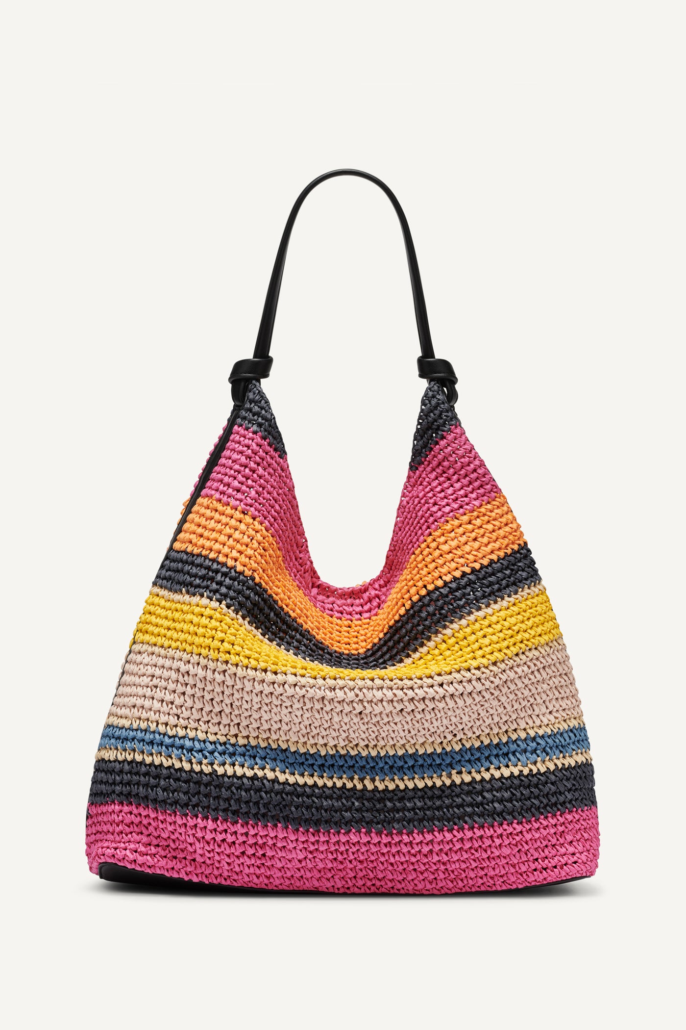 ارتقِ بإطلالتكِ مع حقيبة الكتف هوبو DKNY باولا بعدة ألوان أخاذة. هذه الحقيبة الواسعة خفيفة الوزن مصنوعة من ألياف الورق بنسبة 100% مع حواف انسيابية من البولي يوريثان، وهي مناسبة للغاية للإطلالات اليومية الزاهية، إذ تجمع بين الأناقة غير المبالغ فيها والتصميم العصري الجذاب. رمز المنتج: R61CYO07MUL