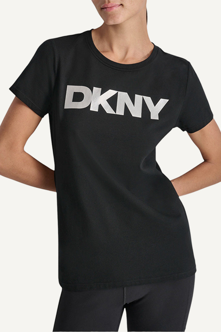 استمتعي بالبساطة والأناقة مع تي شيرت دكني بفتحة ياقة مستديرة ومزين بشعار باللون الأسود. يتميز هذا التي شيرت الرائع بفتحة ياقة مستديرة كلاسيكية، وتفاصيل شعار دكني الجريئة، ليمنحكِ أناقة عملية لا مثيل لها. يمكنك تنسيق هذا التي شيرت الرائع مع جينز أو تنانير ليمنحك إطلالة يومية أنيقة وعصرية.