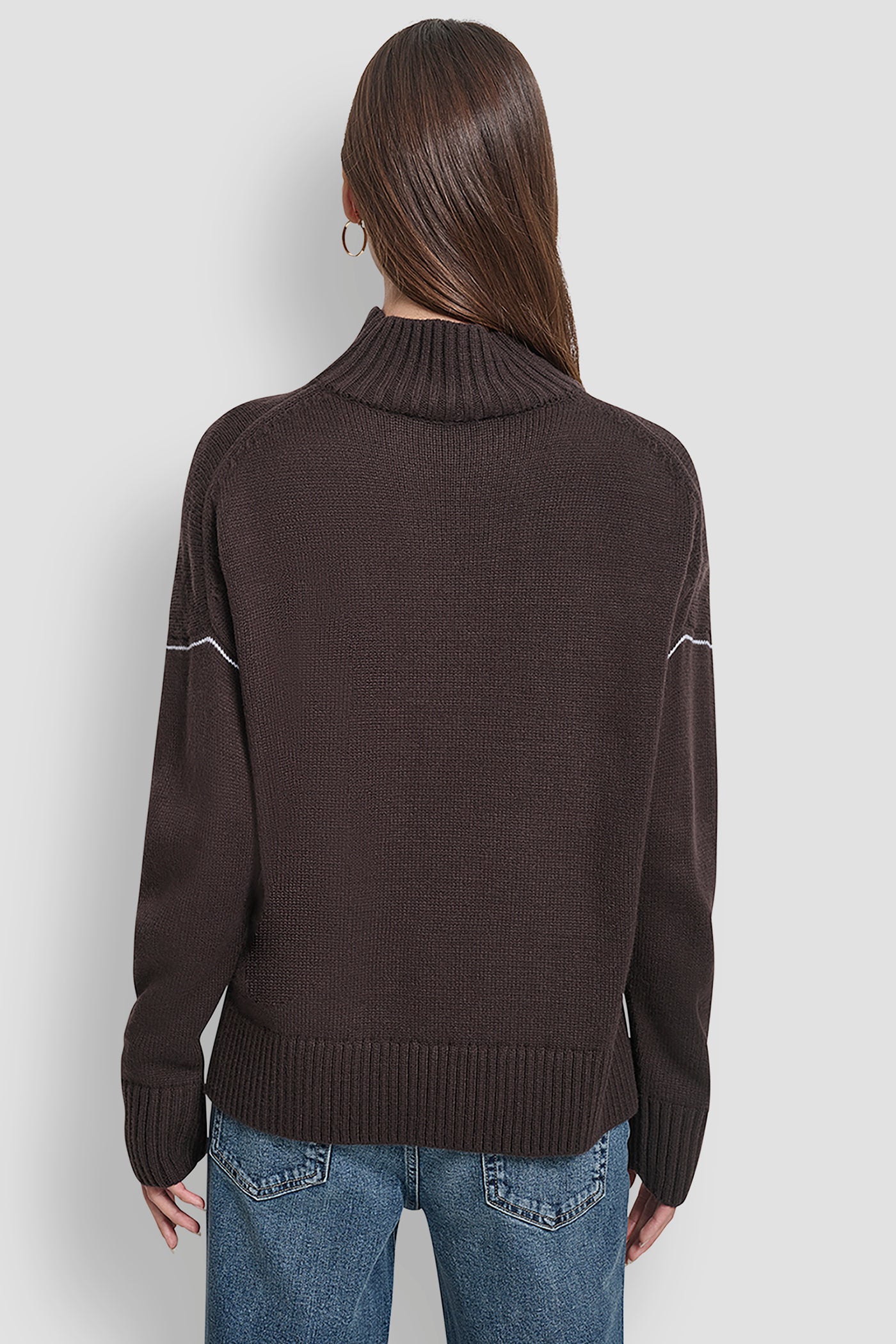 انعمي بالدفء الراقي مع بلوفر DKNY بياقة عالية وشعار مُحاك بتقنية إنتاريسا باللون البني الغني. تمنحكِ هذه القطعة العلوية الدفء، وتأتي بتصميم كلاسيكي بياقة عالية وشعار جريء مُحاك بتقنية إنتارسيا، ما يمزج بين روح العلامة التجارية العصرية والراحة الفائقة، وهي قطعة مثالية لإضفاء لمسة أنيقة على إطلالتكِ الخريفية العصرية أو لتنسيقها مع طبقات أخرى. رمز المنتج: DJ4R0386OT0