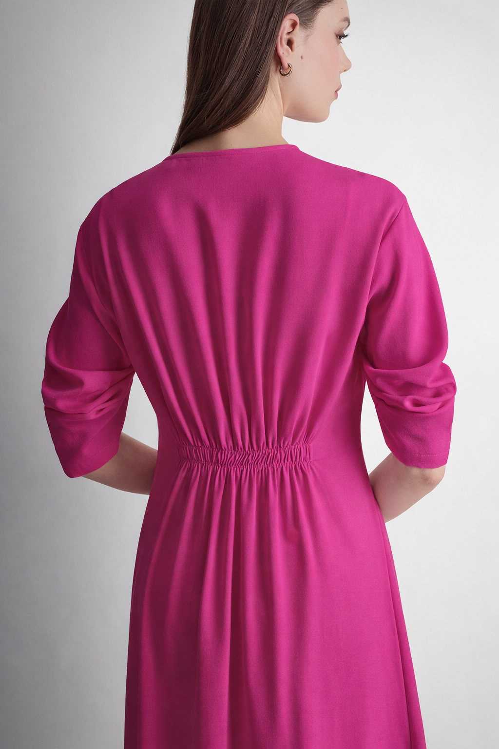 انعمي بإطلالة أنيقة غير متكلفة مع فستان DKNY XLV بأكمام مكشكشة بطول 3/4 بفتحة رقبة V باللون الوردي الأنيق. صُنع هذا الفستان من خامات فاخرة، ويتميز بتفاصيل كشكشة تبرز جمال القوام، مع فتحة رقبة V وأكمام بطول ثلاثة أرباع؛ ما يجعله الخيار الأمثل لمواعيد الغداء أو النزهات المسائية. رمز المنتج: P5KB8AD4VVP