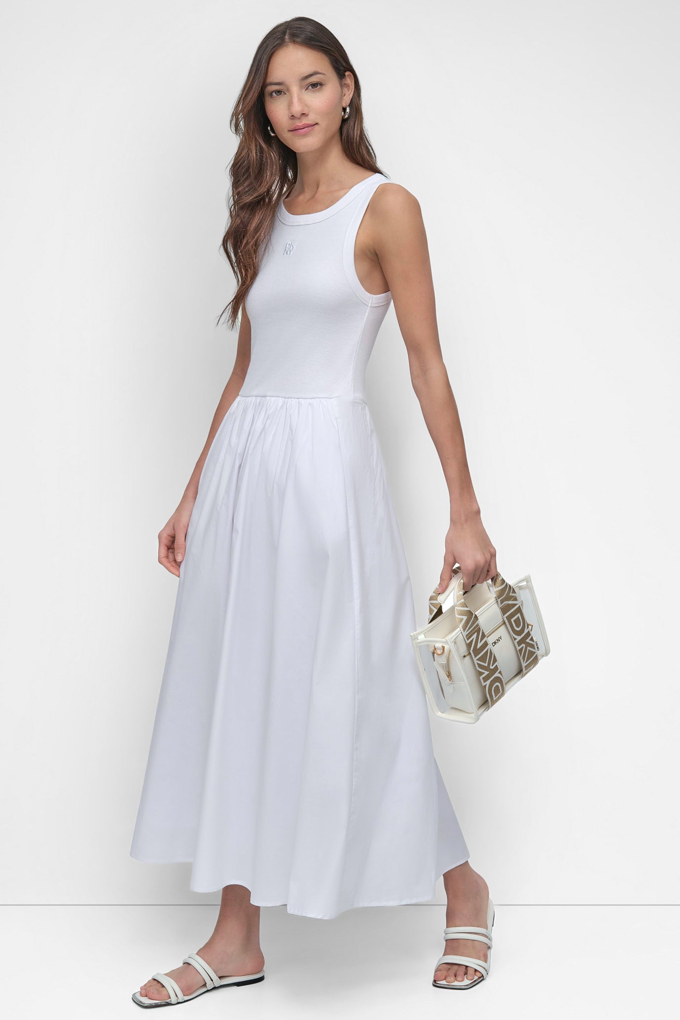 Effortlessly chic, the DKNY Rib Tank Dress in crisp white features a flattering body-hugging silhouette and ultra-soft ribbed fabric. Perfect for layering or solo wear, this versatile dress transitions seamlessly from casual day looks to evening outings.