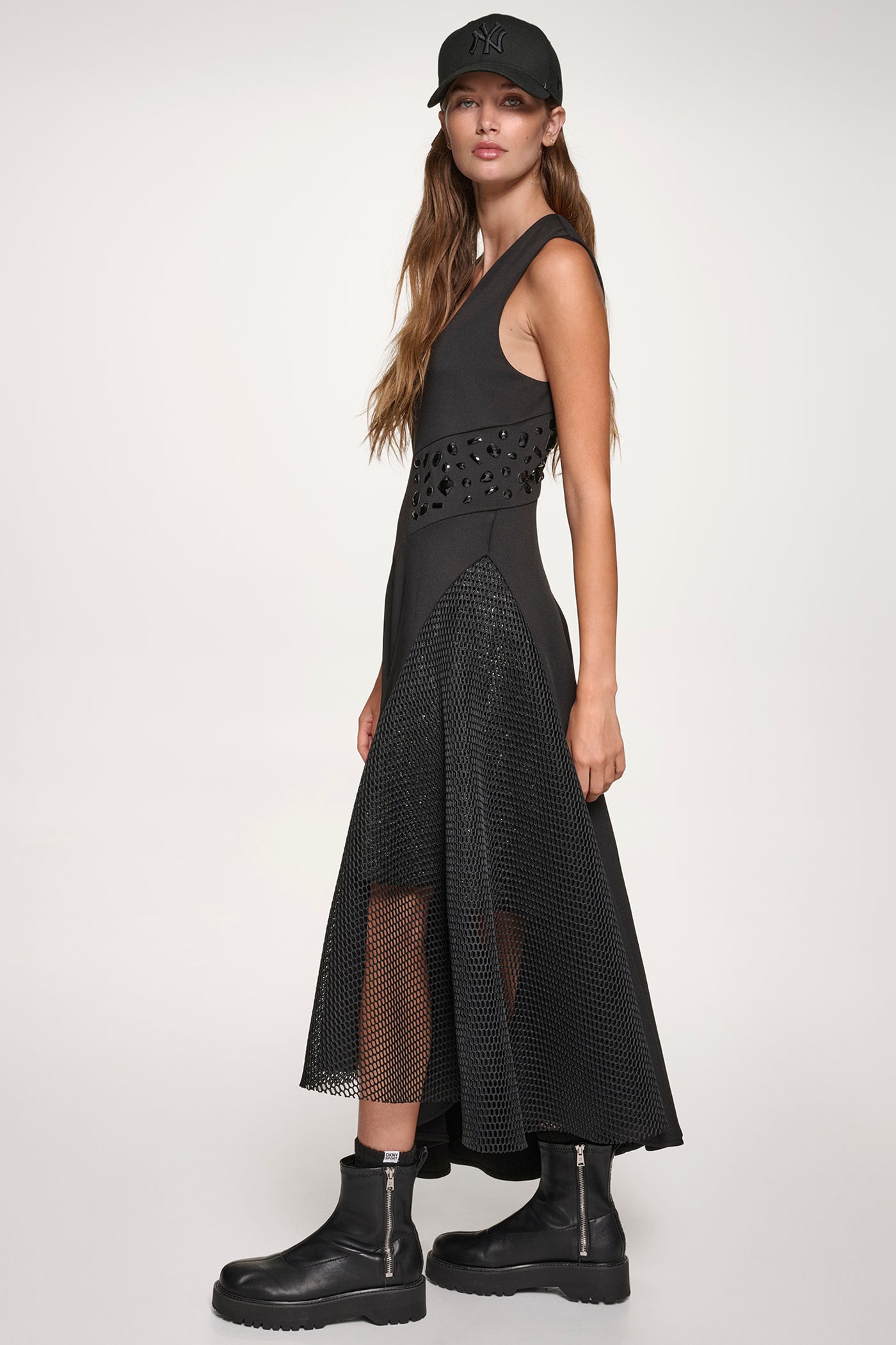 SLEEVELESS MIX MEDIA PANEL DRESS