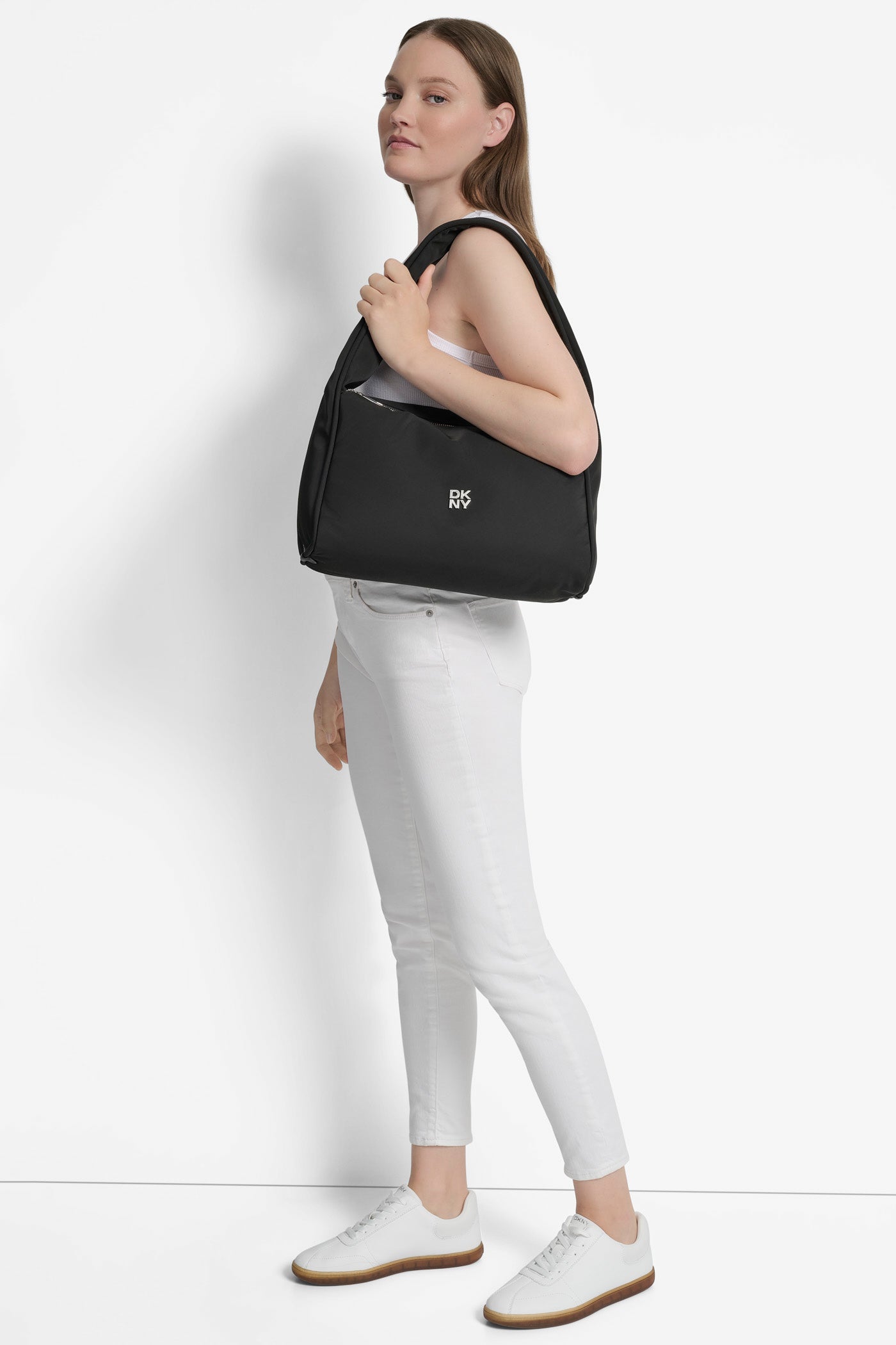 Effortlessly chic, the DKNY JENNY HOBO shoulder bag in classic black blends modern sophistication with everyday practicality. Its spacious interior and sleek silhouette make it perfect for versatile styling, providing both comfort and a polished finish to any outfit.