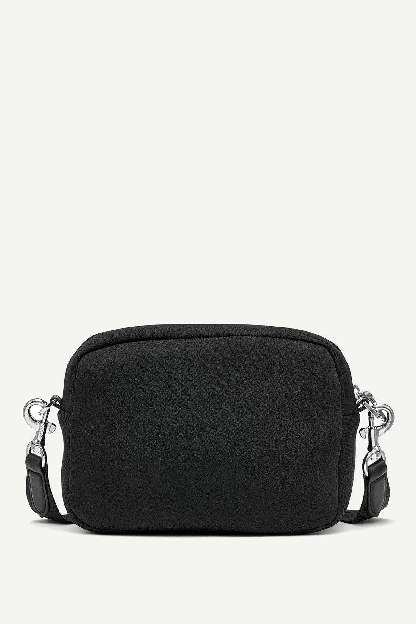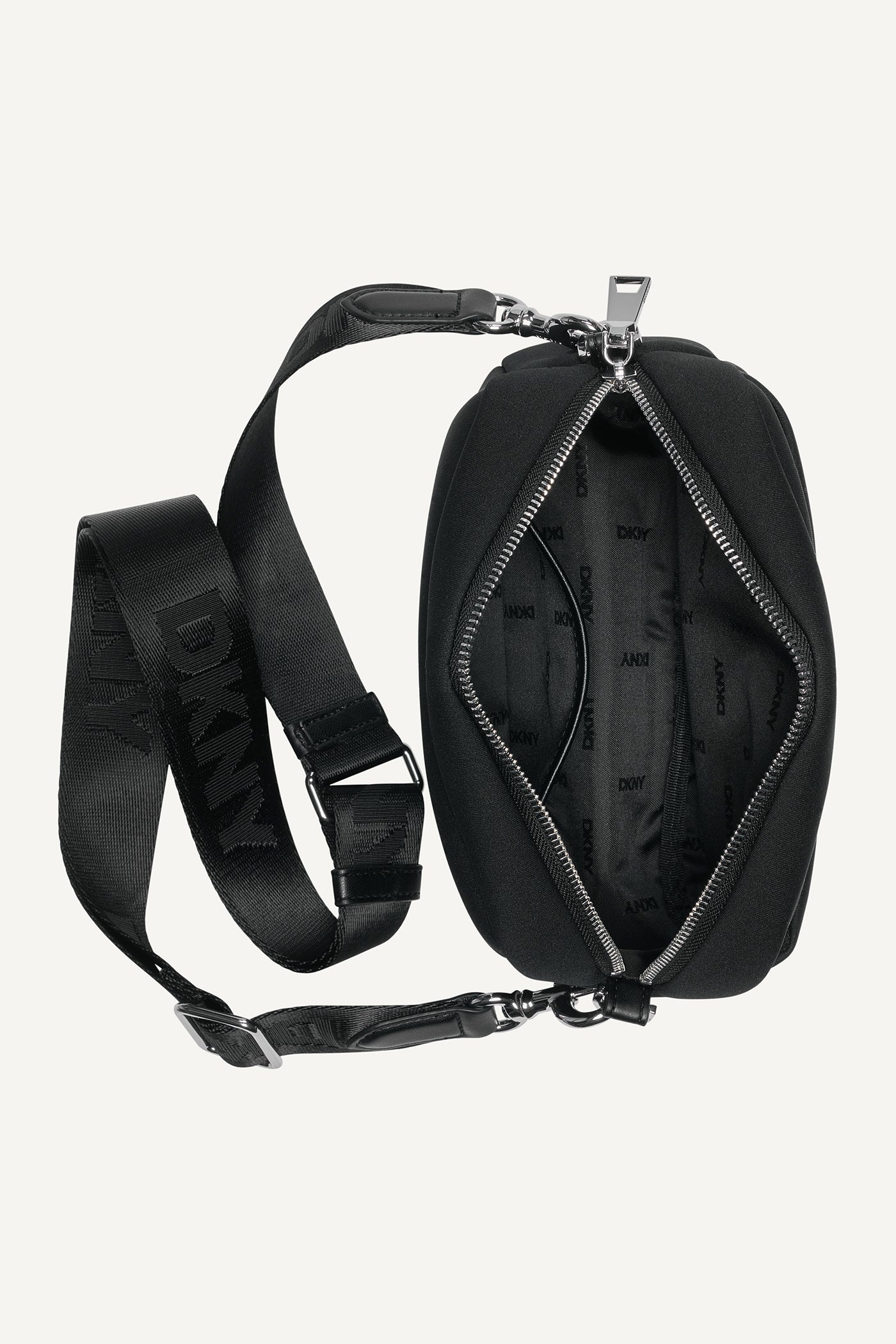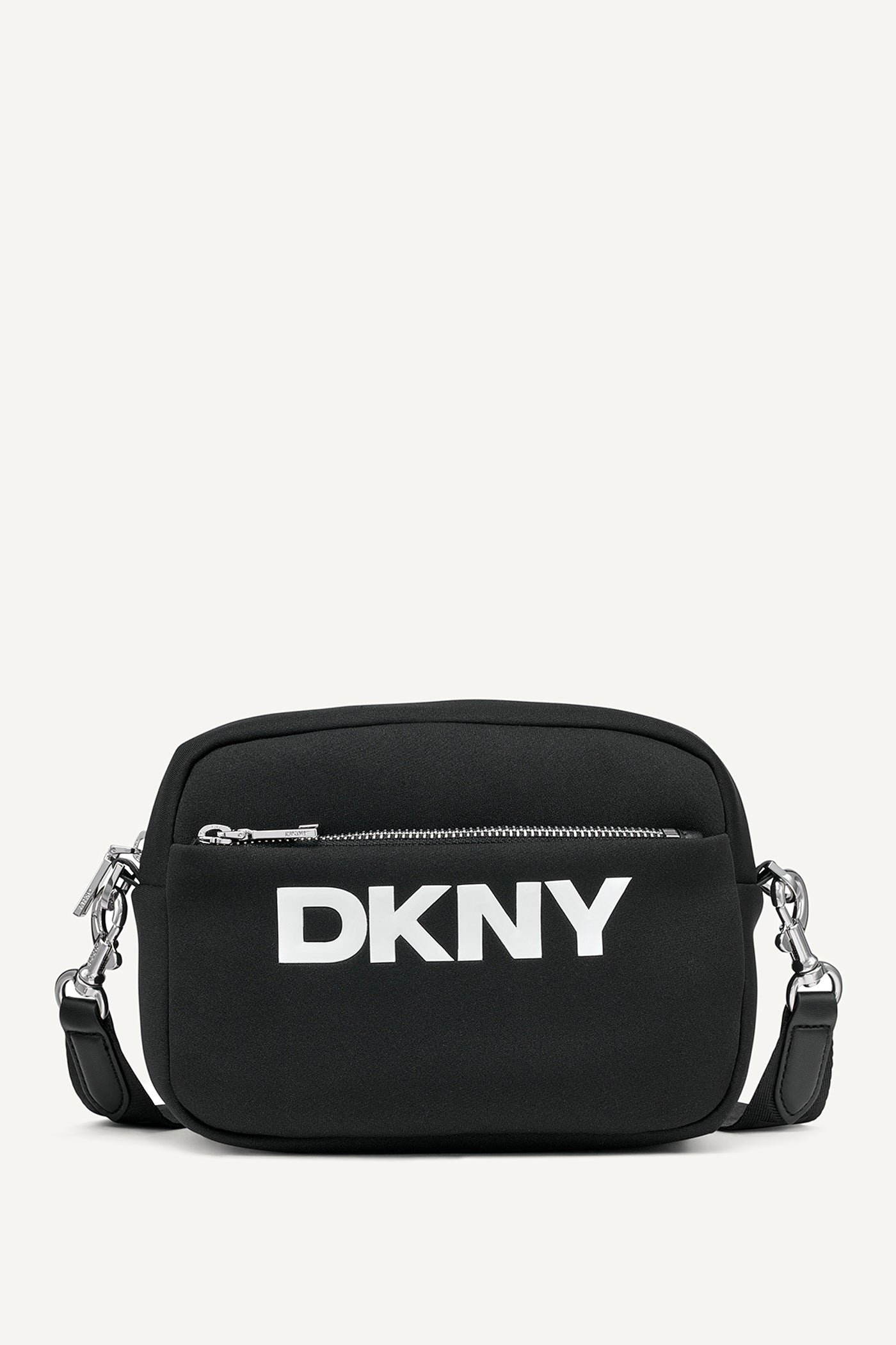 Experience effortless style with the JENNY SMALL CAMERA BAG by DKNY. Crafted in sleek black, this compact bag offers functionality without compromising elegance. Perfect for day-to-night transitions, its timeless design makes it an essential accessory for any wardrobe.