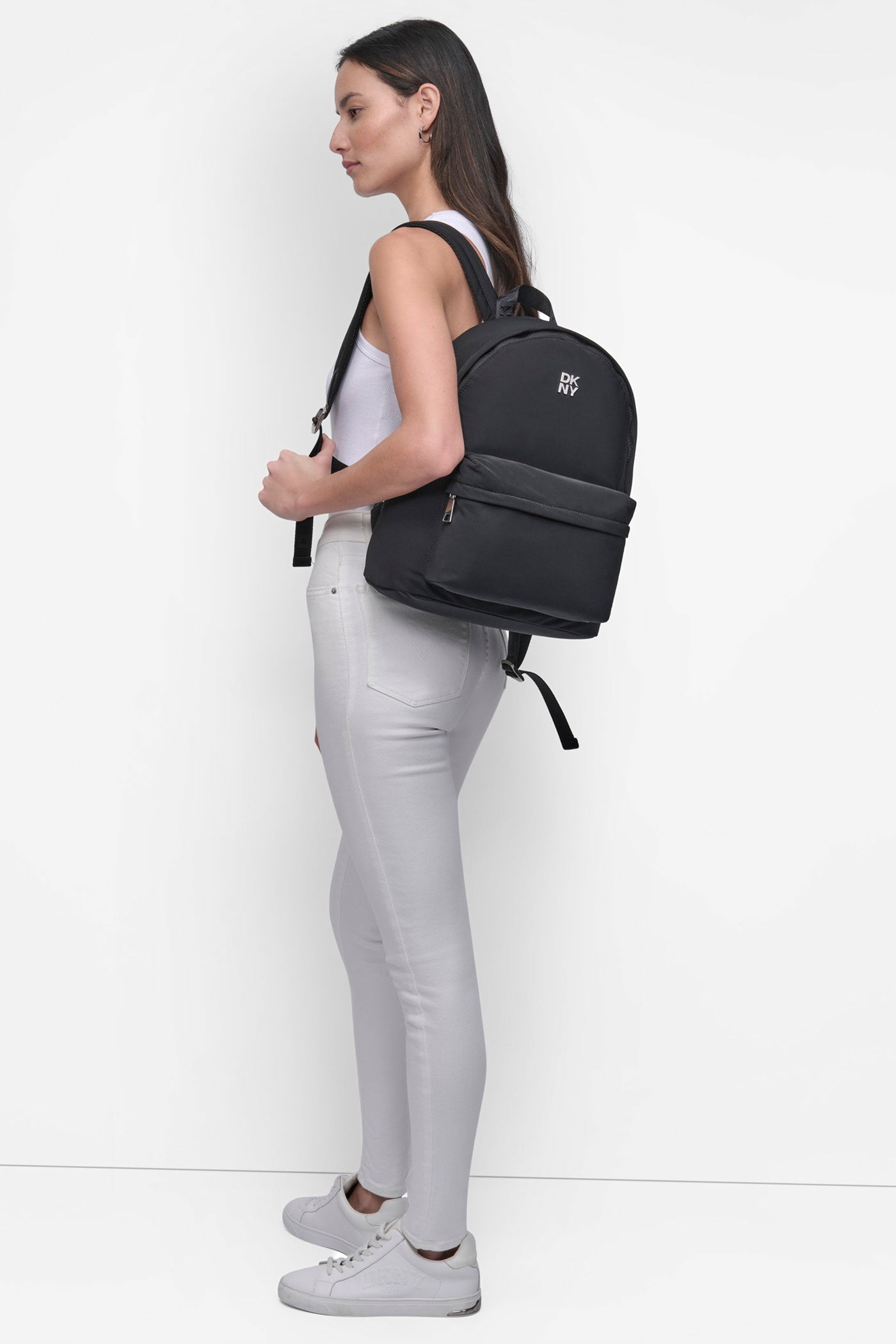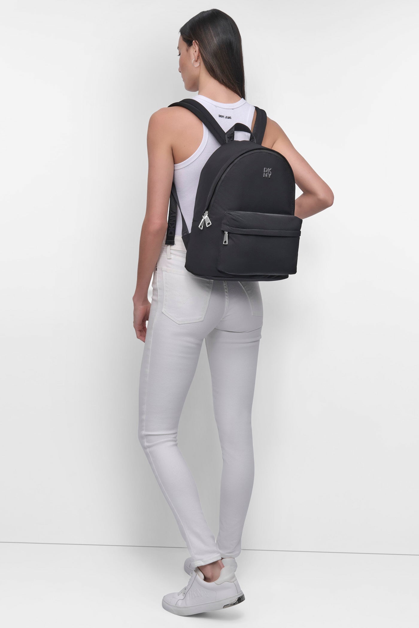 Elevate your style with the DKNY Jenny Medium Backpack. Sleek and versatile, this black bag blends modern design with functionality. Crafted for the fashion-forward, it seamlessly transitions from day to night, offering ample space for essentials.