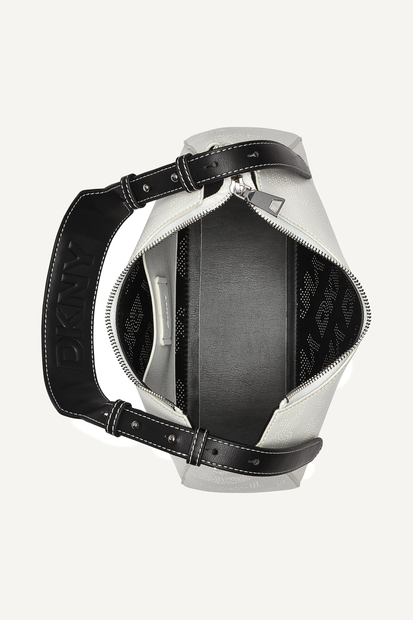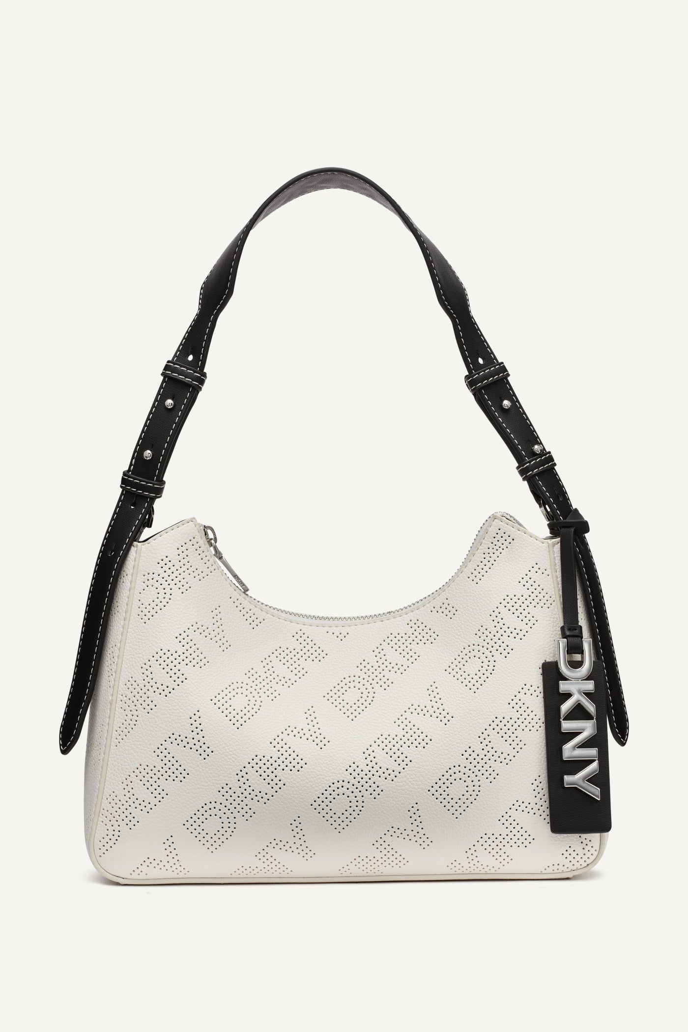 Elevate your style with the DKNY Shelly Shoulder Bag in elegant white. This chic accessory features a sleek silhouette, polished hardware, and an adjustable strap-perfect for day or night. Effortlessly organize essentials and make a sophisticated statement everywhere you go.