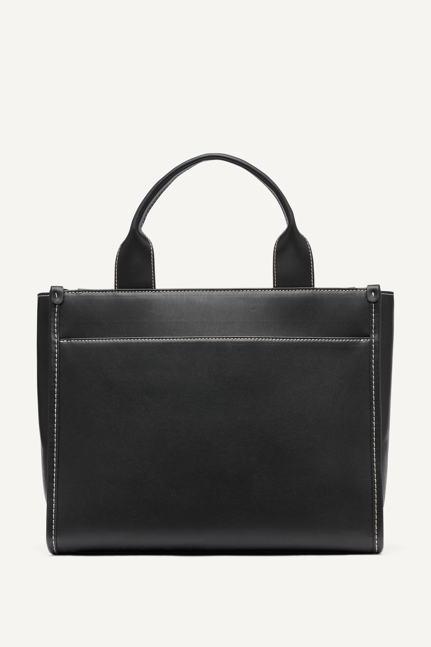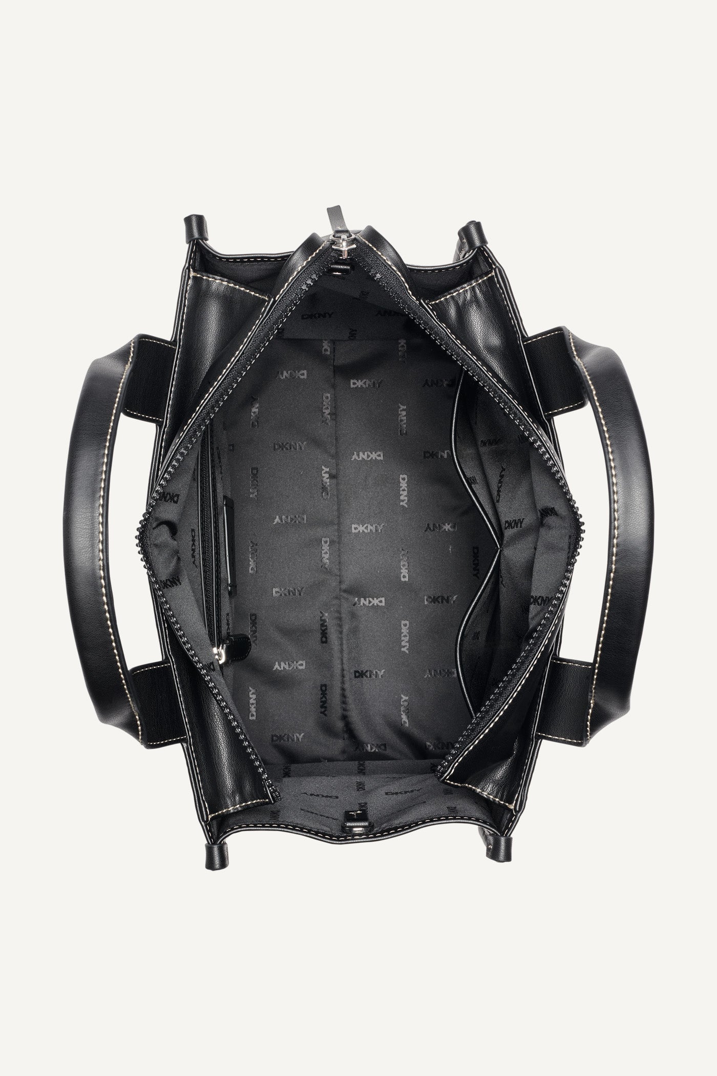 The DKNY Hadlee Medium Tote in sleek black is the perfect blend of style and function. Featuring premium materials, chic gold-tone hardware, and ample interior space, this versatile tote elevates any outfit while securely organizing your essentials for everyday sophistication.