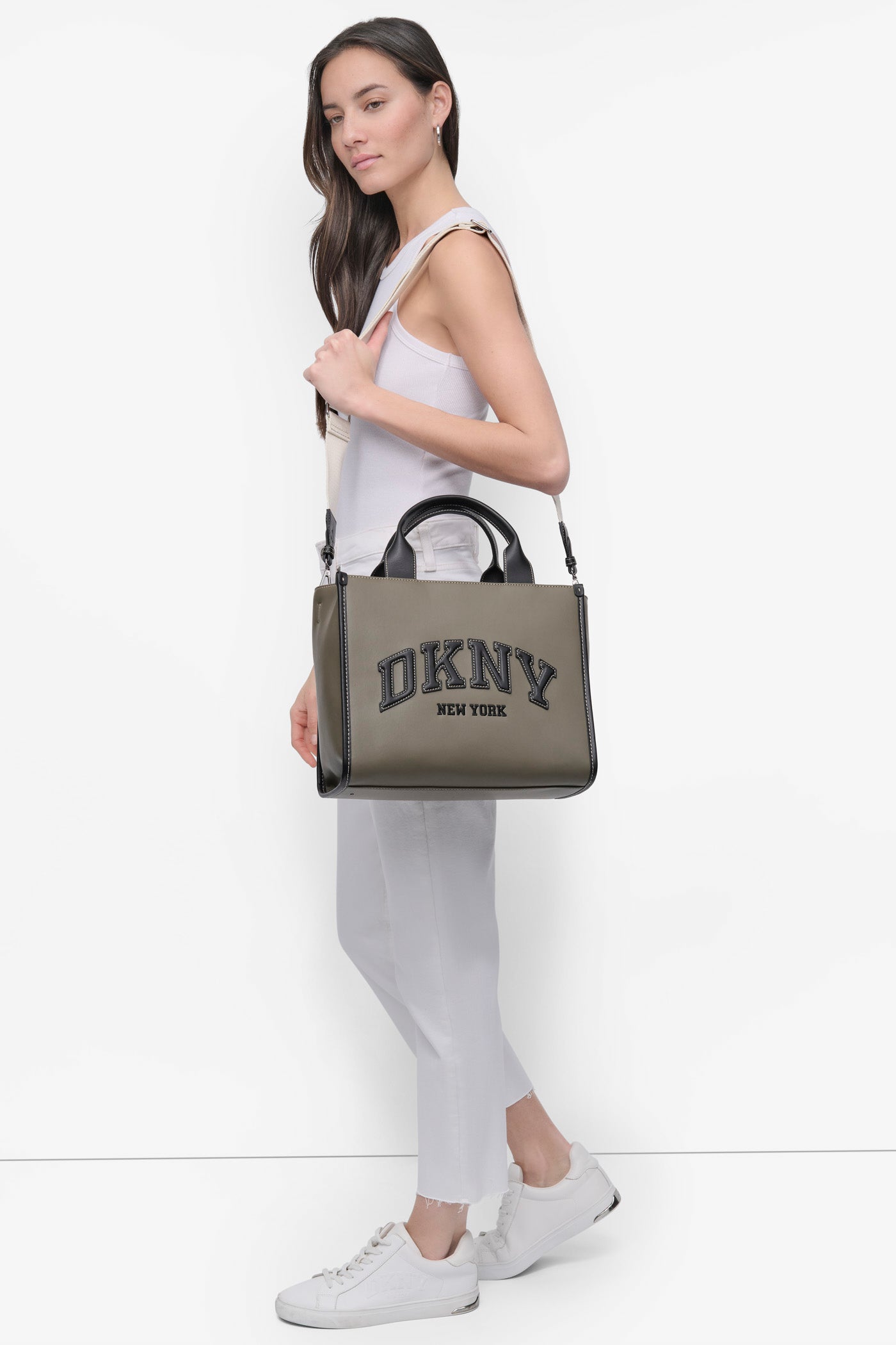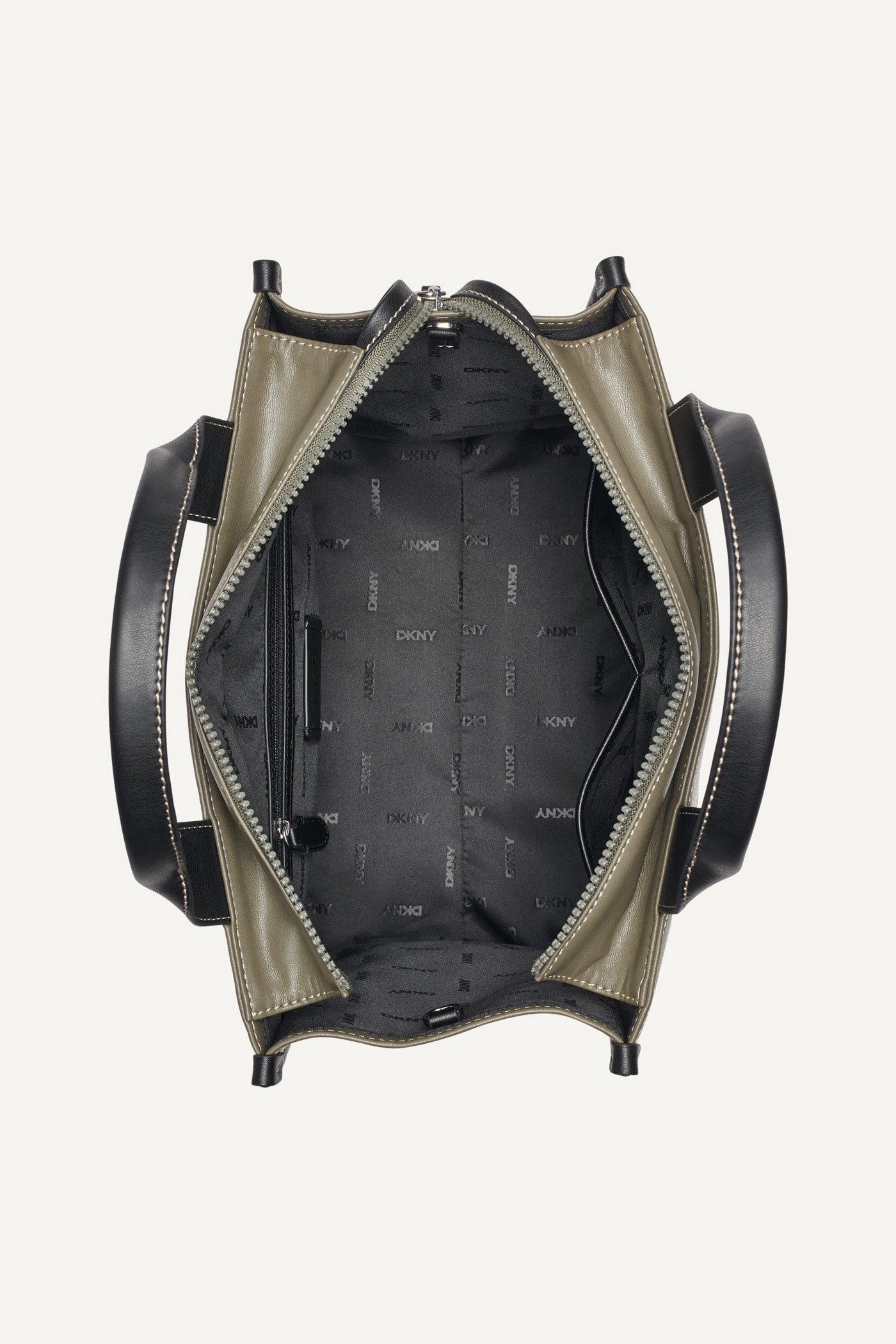 Elevate your everyday style with the DKNY Hadlee Medium Tote in vibrant green. Spacious yet sleek, this chic tote features durable handles, a secure zip closure, and refined detailing-perfect for carrying essentials in sophisticated, eye-catching fashion wherever you go.