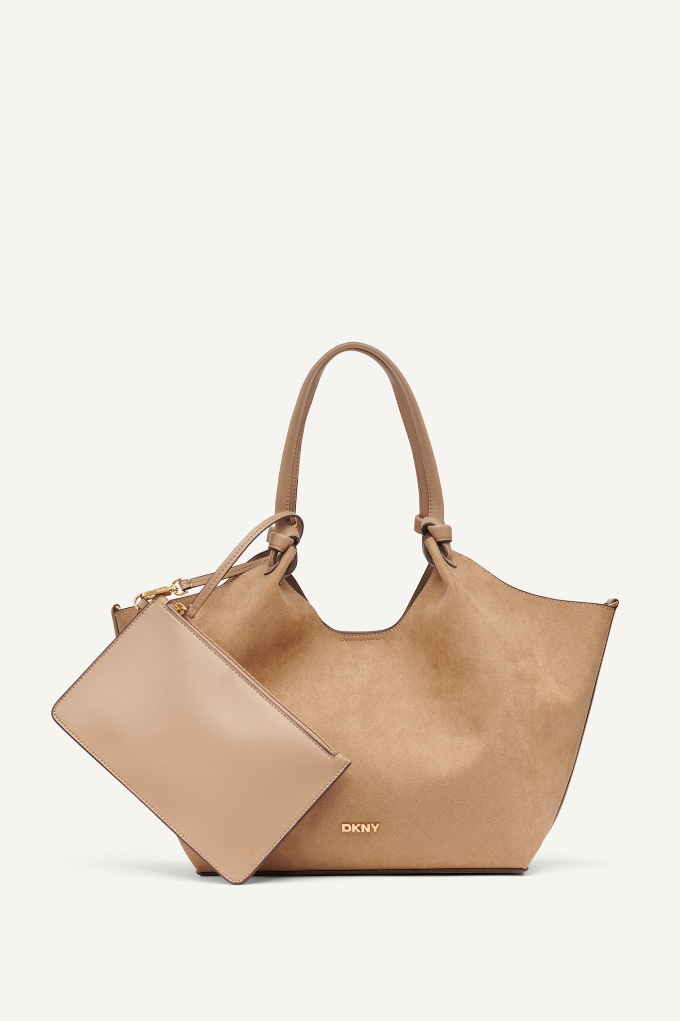 Elevate your everyday style with the DKNY Paula Medium Tote in elegant beige. Crafted for versatility, its spacious interior and sleek silhouette accommodate all essentials, while sturdy handles and premium detailing ensure sophistication and durability for work or weekend outings.