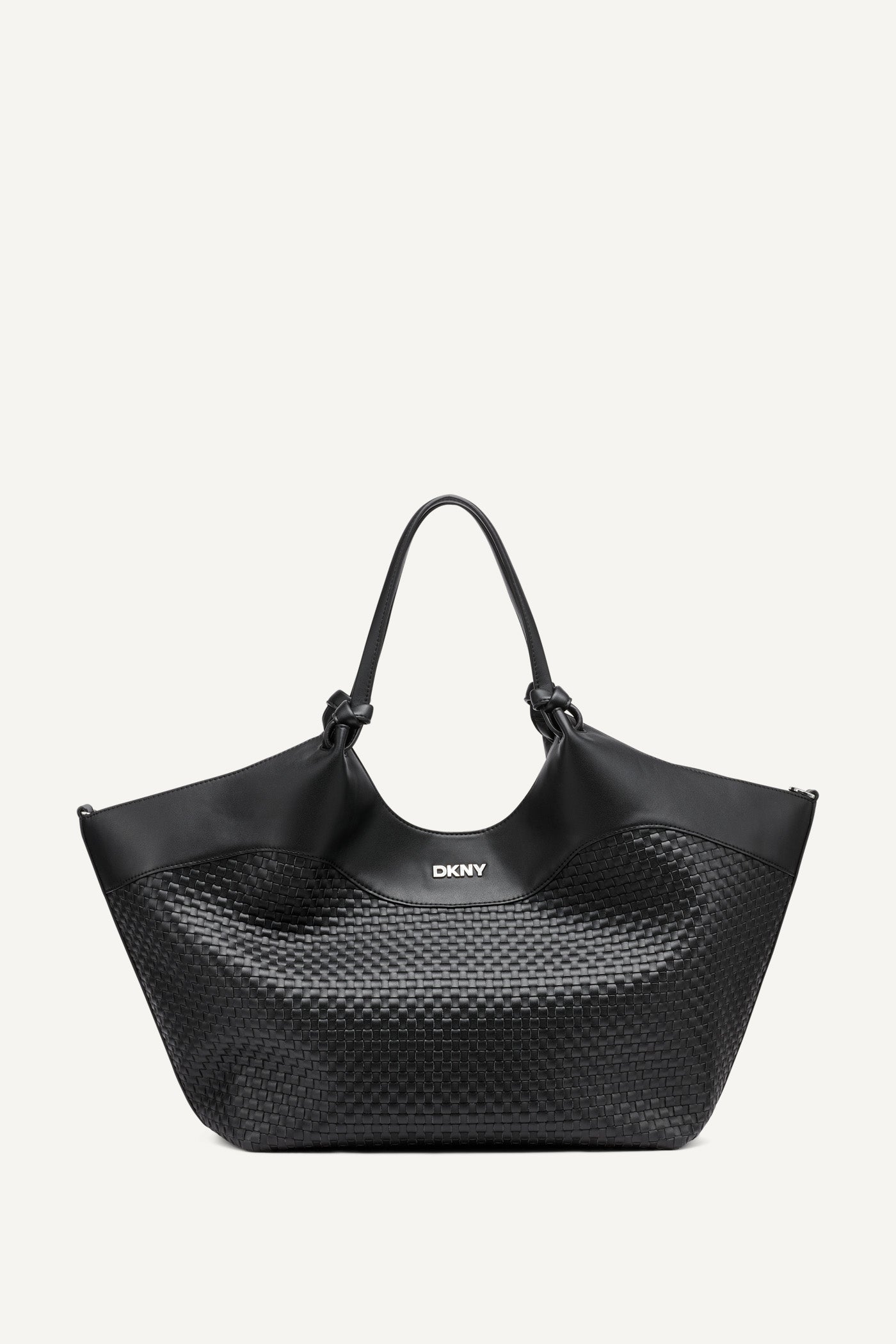 Elevate your everyday style with the DKNY Paula Large Tote in classic black. Featuring spacious compartments, sturdy double handles, and sleek gold-tone accents, this elegant tote is perfect for carrying daily essentials with sophistication, ideal for work or travel.
