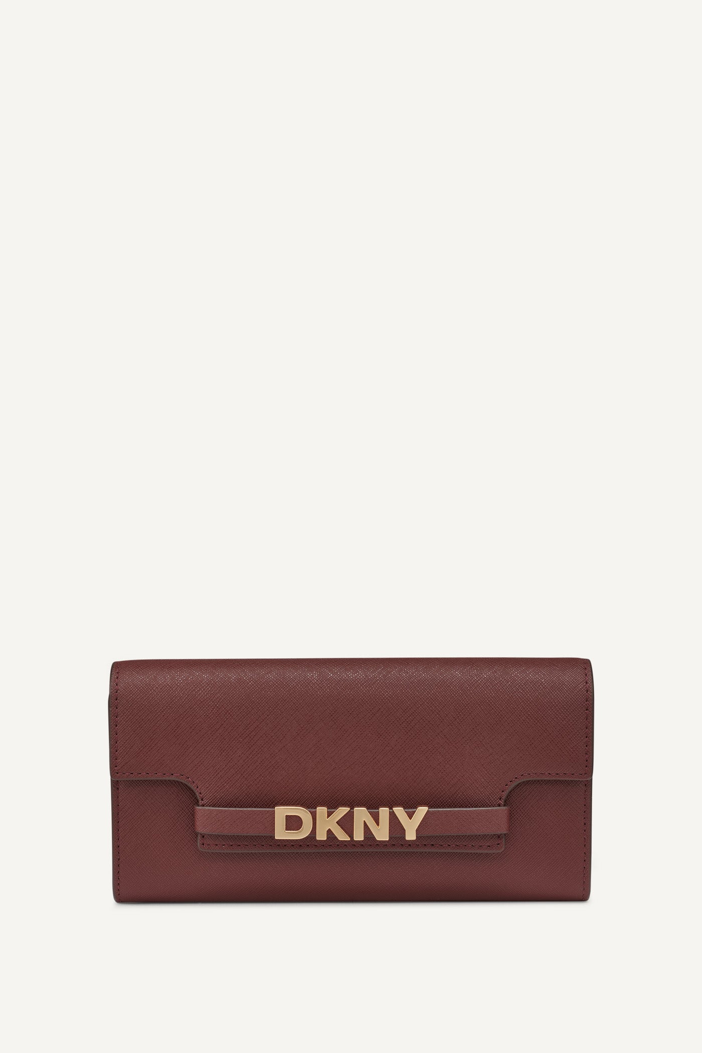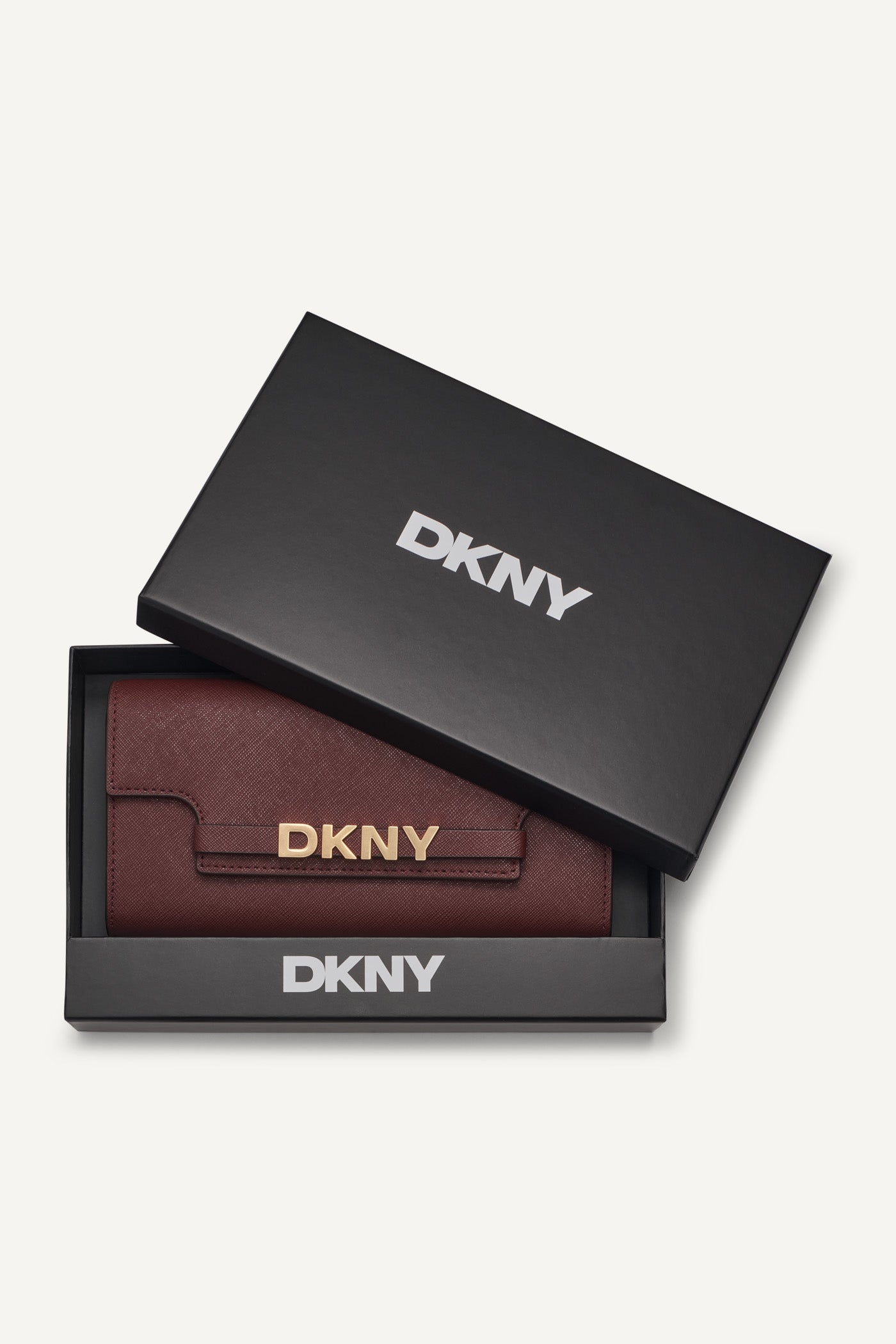 The DKNY Avril Bi-Fold Wallet in striking red offers both elegance and practicality. Featuring multiple card slots, a secure snap closure, and sleek lines, this compact accessory is perfect for everyday essentials. Make a stylish statement with every transaction.