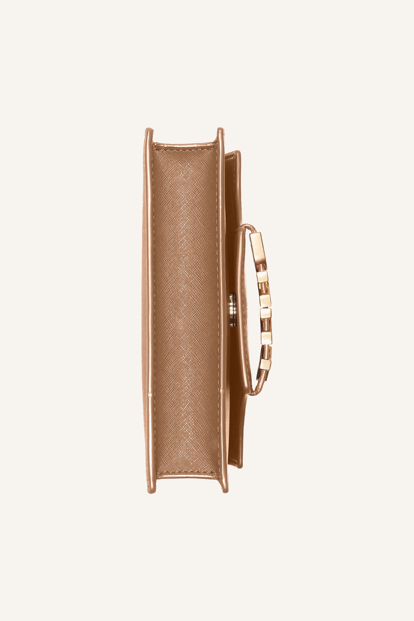 Effortlessly chic, the DKNY Avril Wallet on a Strap in timeless beige combines versatility and elegance. Featuring multiple card slots and a detachable strap, it transitions seamlessly from wallet to crossbody-perfect for organizing essentials in style, day or night.