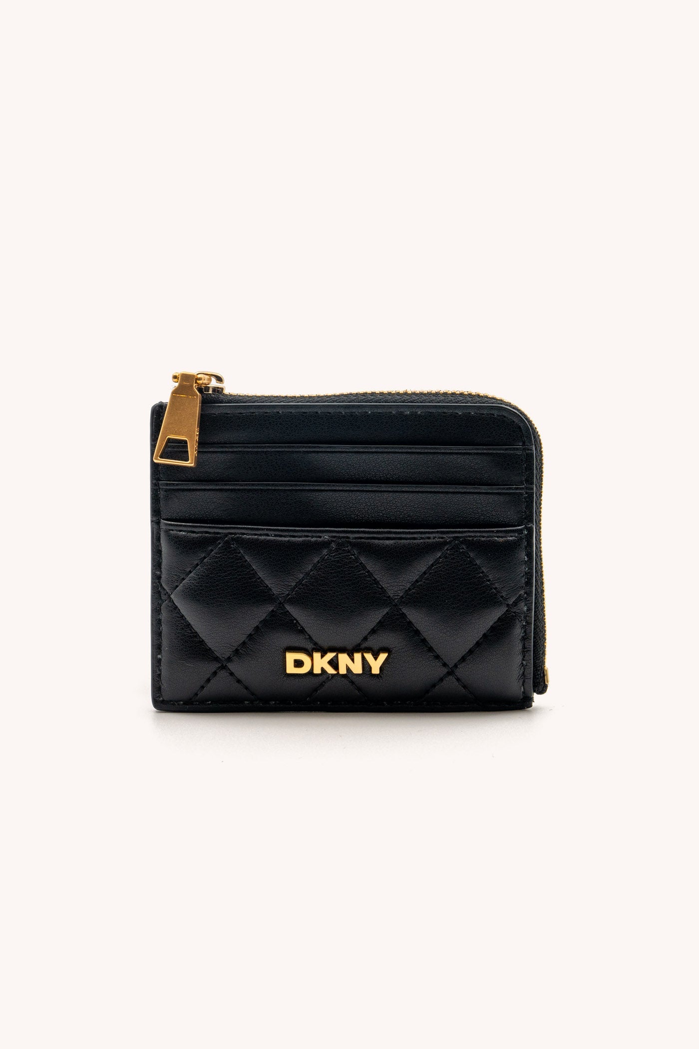 Stay organized in style with the DKNY Trina Zip Around Cardcase in classic black. This sleek, compact wallet features secure zip closure, multiple card slots, and a sophisticated, minimalist design-perfect for daily essentials and effortless, on-the-go elegance.
