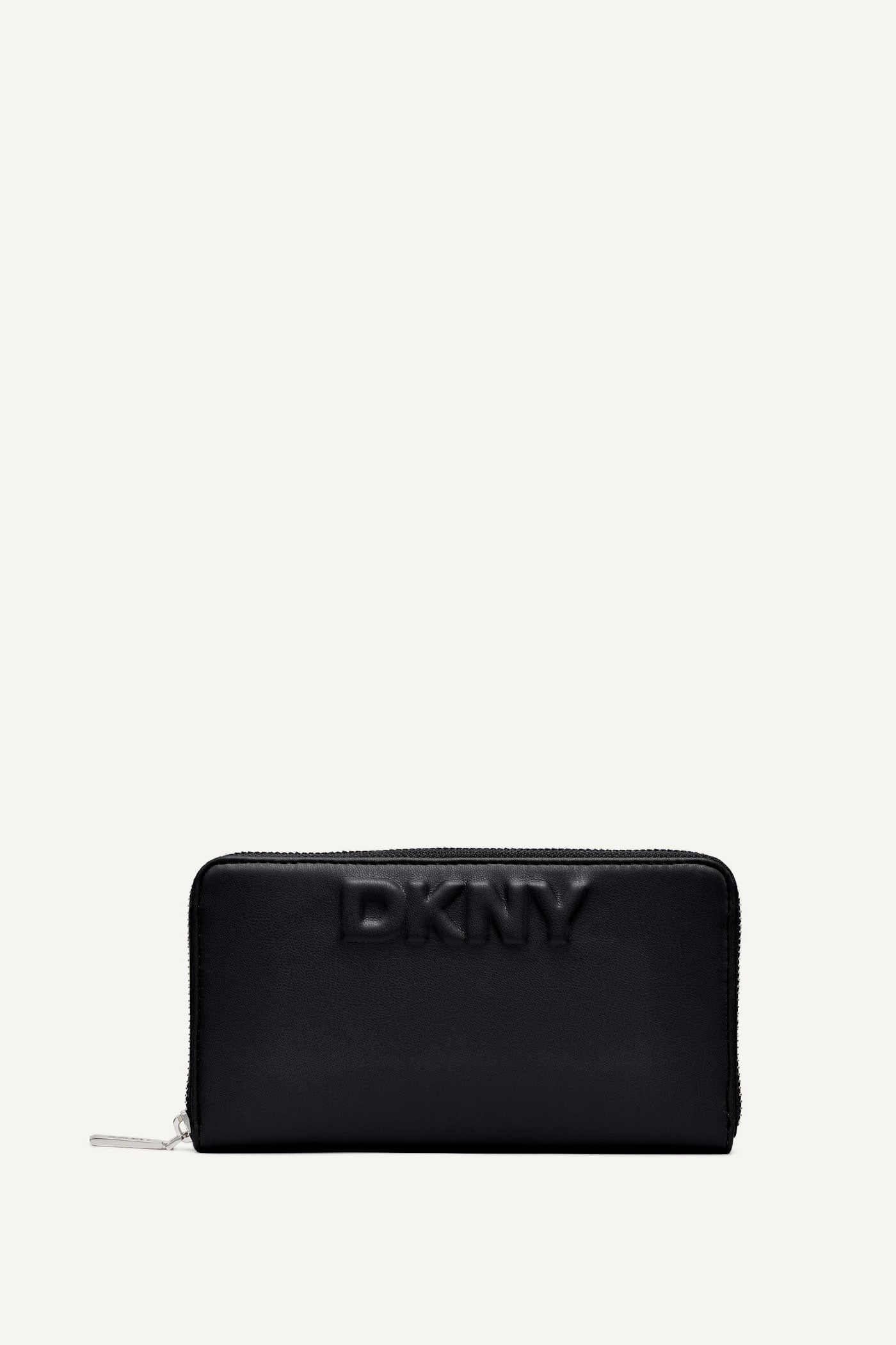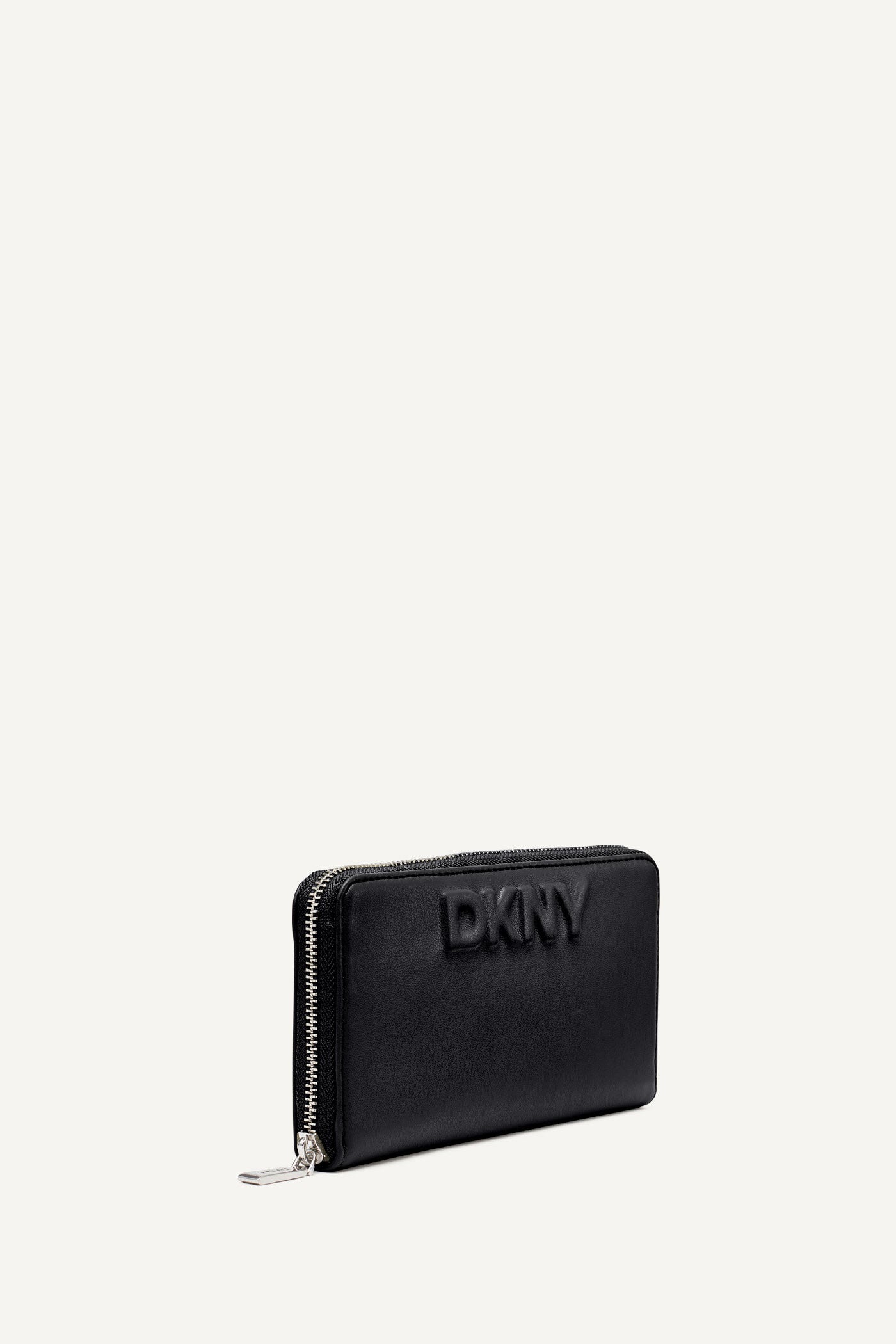 Sleek and sophisticated, the DKNY Tinsley Zip Around Wallet in classic black features ample card slots, a secure zip closure, and premium craftsmanship. This versatile accessory effortlessly organizes essentials, combining iconic DKNY style with everyday practicality for modern elegance.