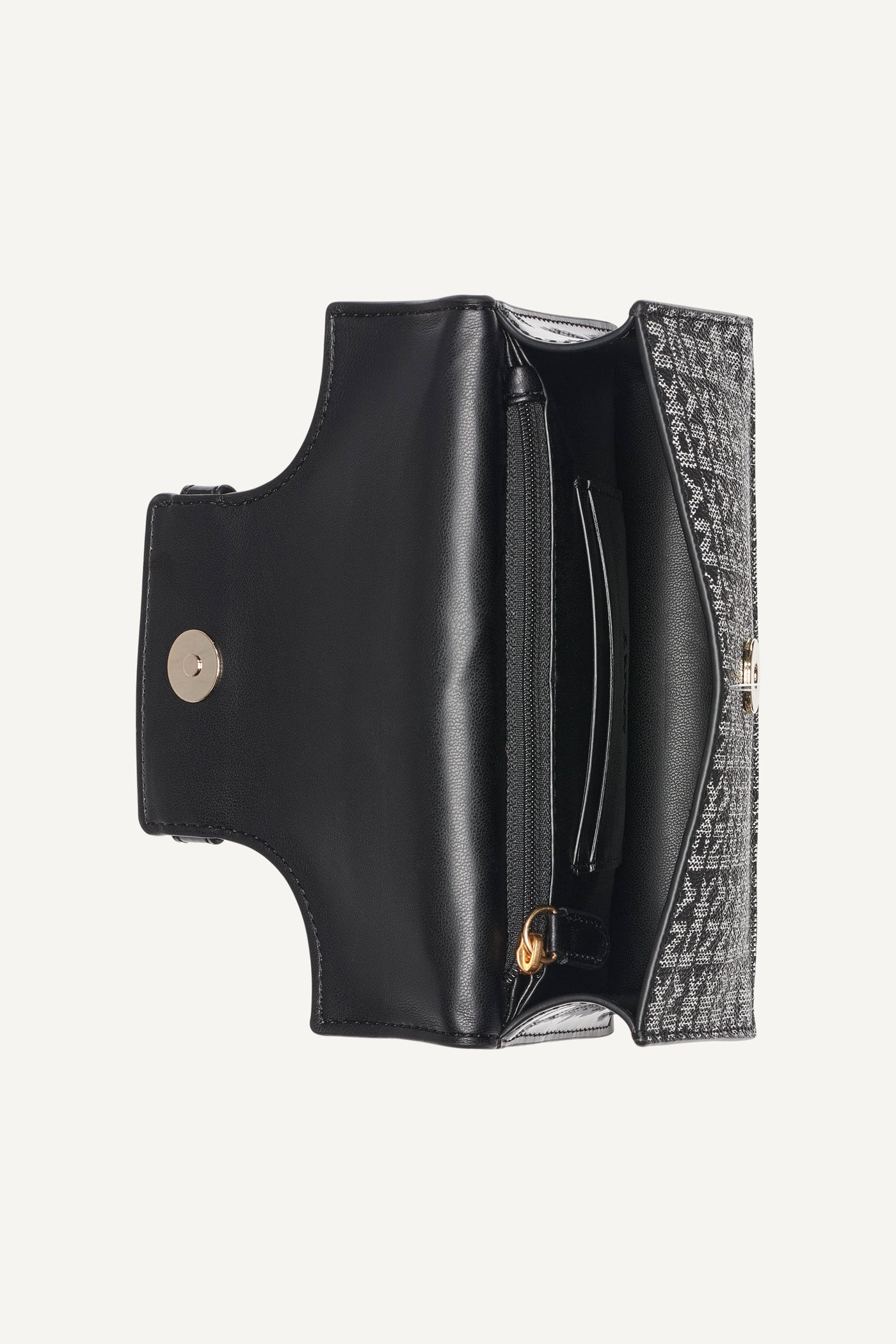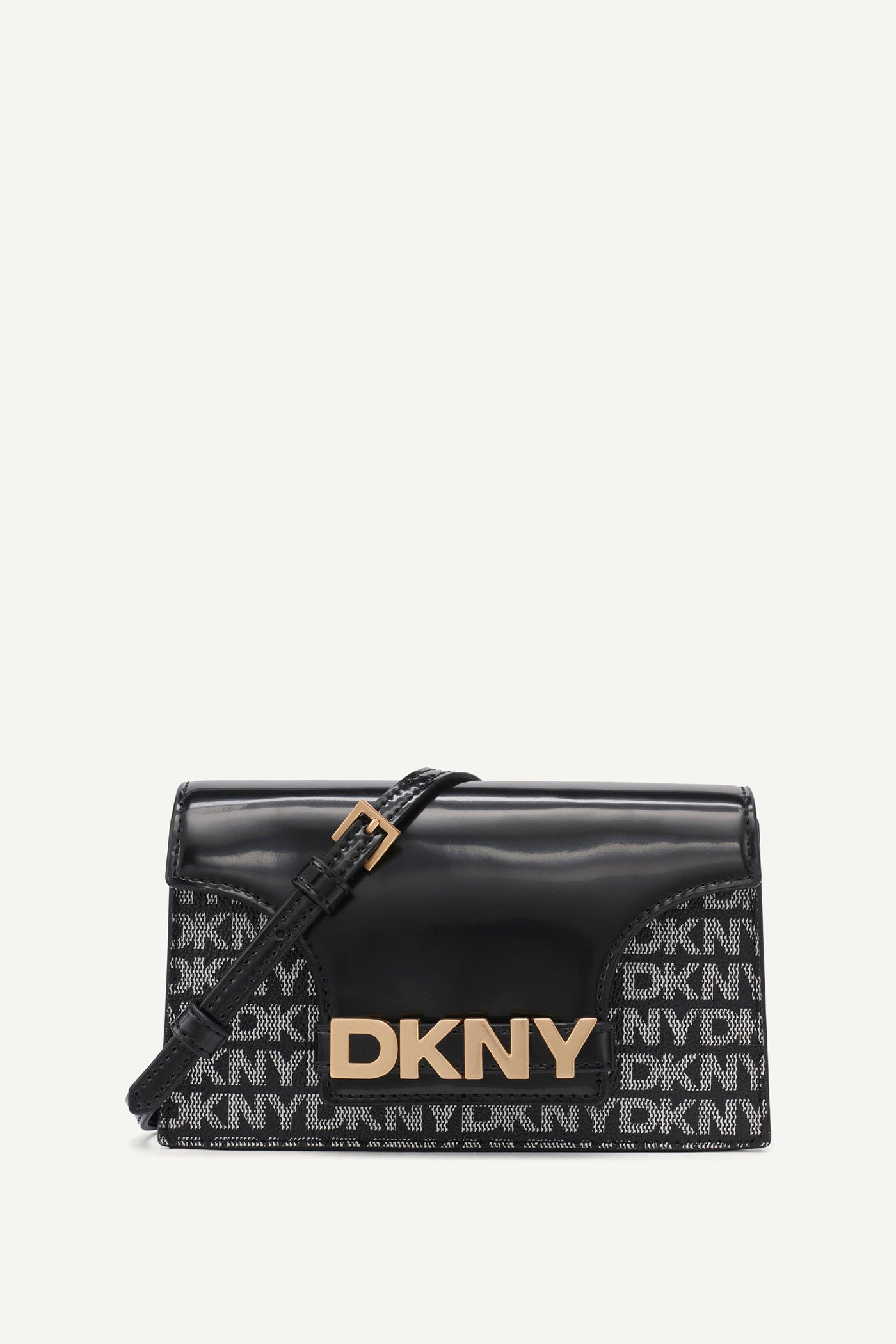 The DKNY Avril Wallet on a Strap in classic black offers versatile elegance. Effortlessly carry essentials with this compact piece, featuring sleek lines, polished hardware, organized card slots, and a detachable strap for convenient hands-free styling-an ideal wallet-meets-mini-bag solution.
