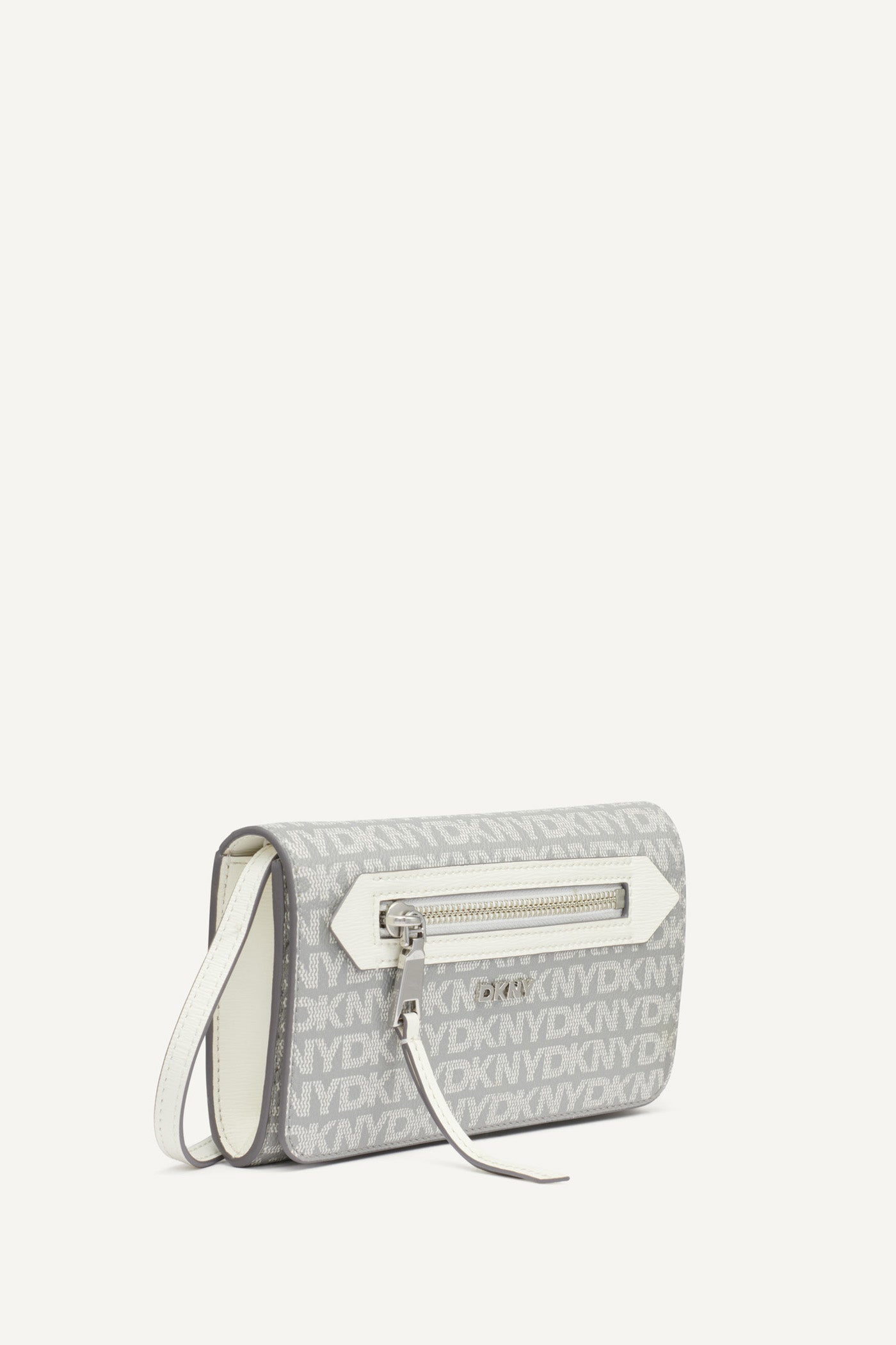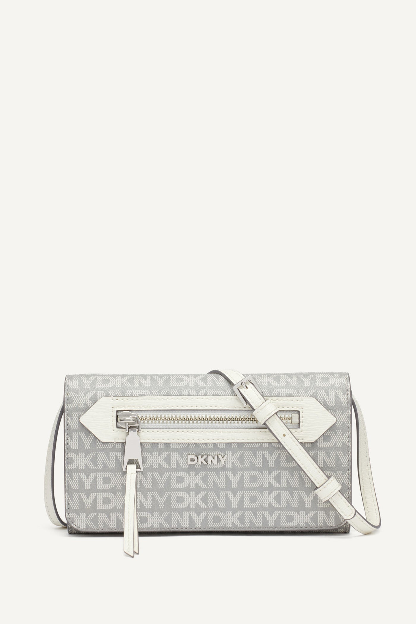 Chic and versatile, the DKNY Bryant Avenue Wallet Crossbody in grey blends style with functionality. Featuring multiple card slots, secure zip closure, and a detachable strap, this compact accessory seamlessly transitions from wallet to crossbody for effortless everyday elegance.