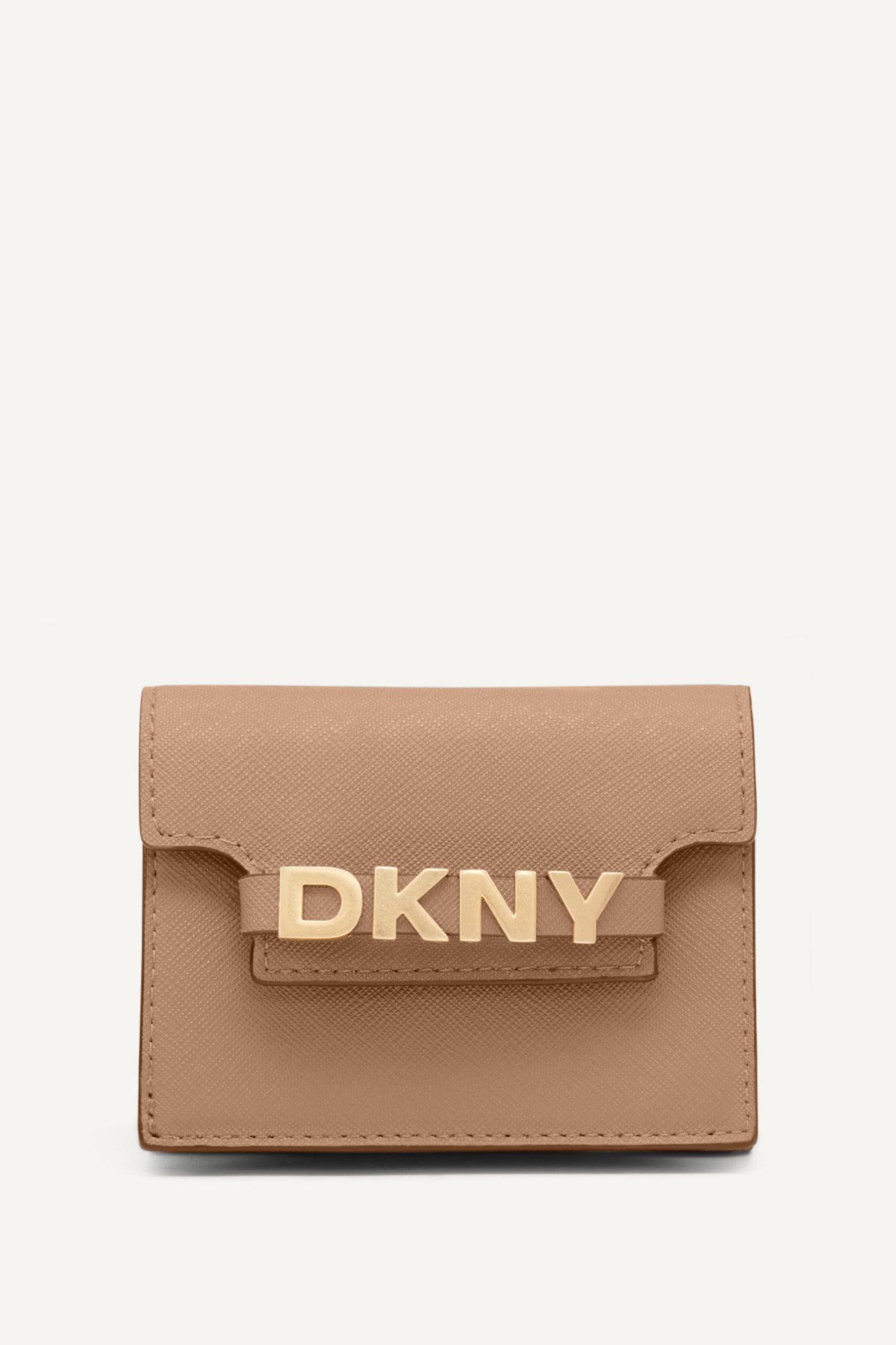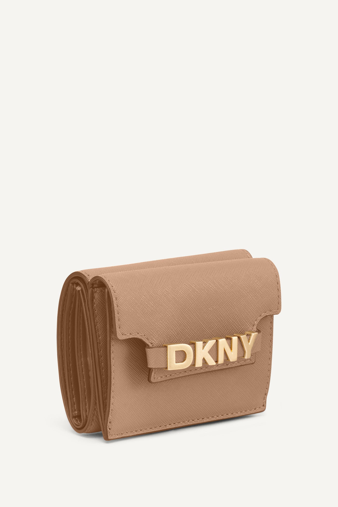 The AVRIL Tri-Fold Wallet by DKNY is crafted from 100% cow leather coated with 100% polyurethane, ensuring durability and a refined finish. Its tri-fold design offers organized storage with multiple card slots, a clear ID window, and a secure bill compartment, combining expert craftsmanship with functional elegance for everyday use.