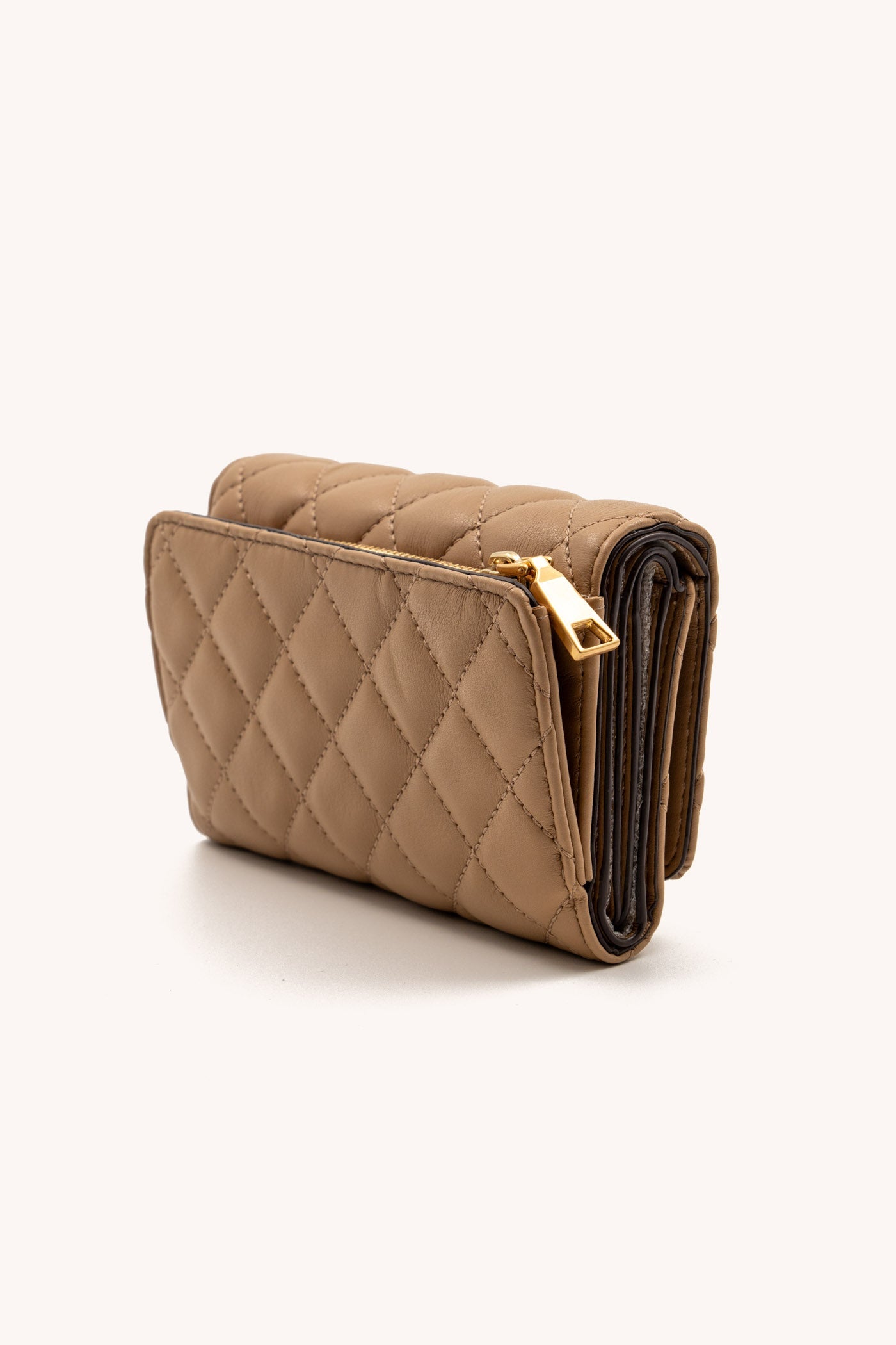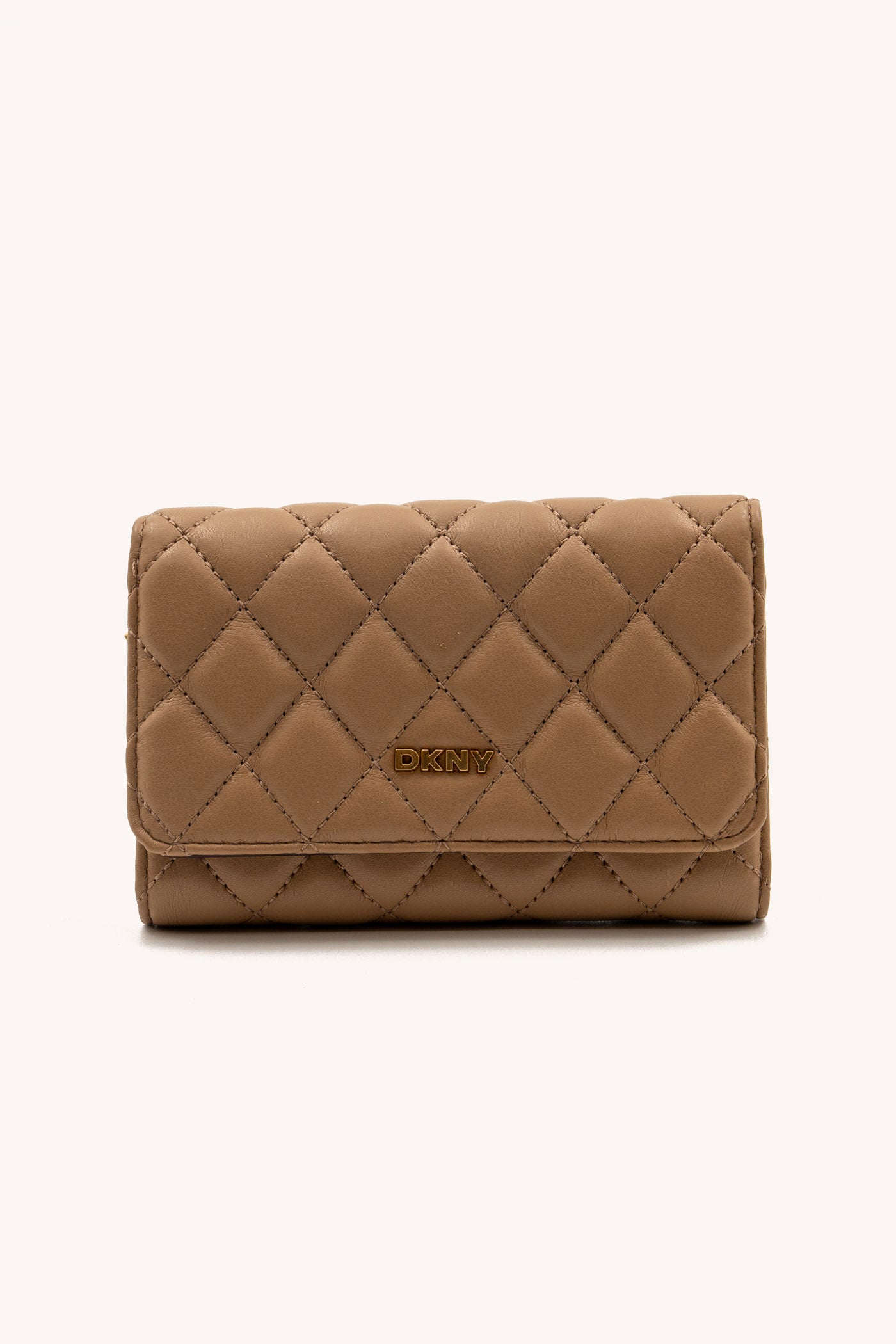 Organize your essentials in style with the DKNY TRINA TRI-FOLD WALLET in elegant BROWN. Thoughtfully designed, it offers ample card slots, a secure coin pocket, and sleek gold-tone hardware-making it the perfect sophisticated accessory for everyday functionality.