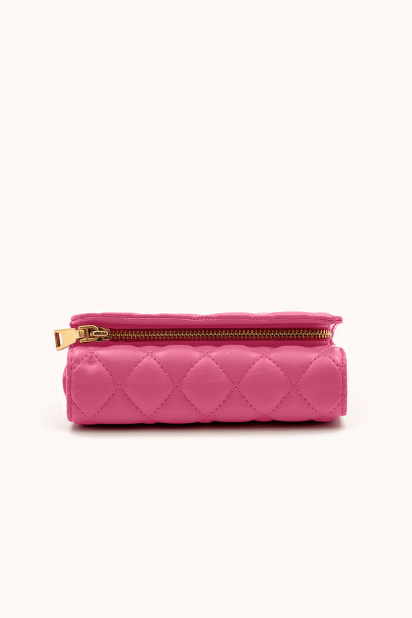 Add a pop of color to your essentials with the DKNY Trina Tri-Fold Wallet in vibrant pink. Designed for style and functionality, it features multiple compartments and sleek gold-tone detailing, keeping your cards and cash secure in effortless elegance.