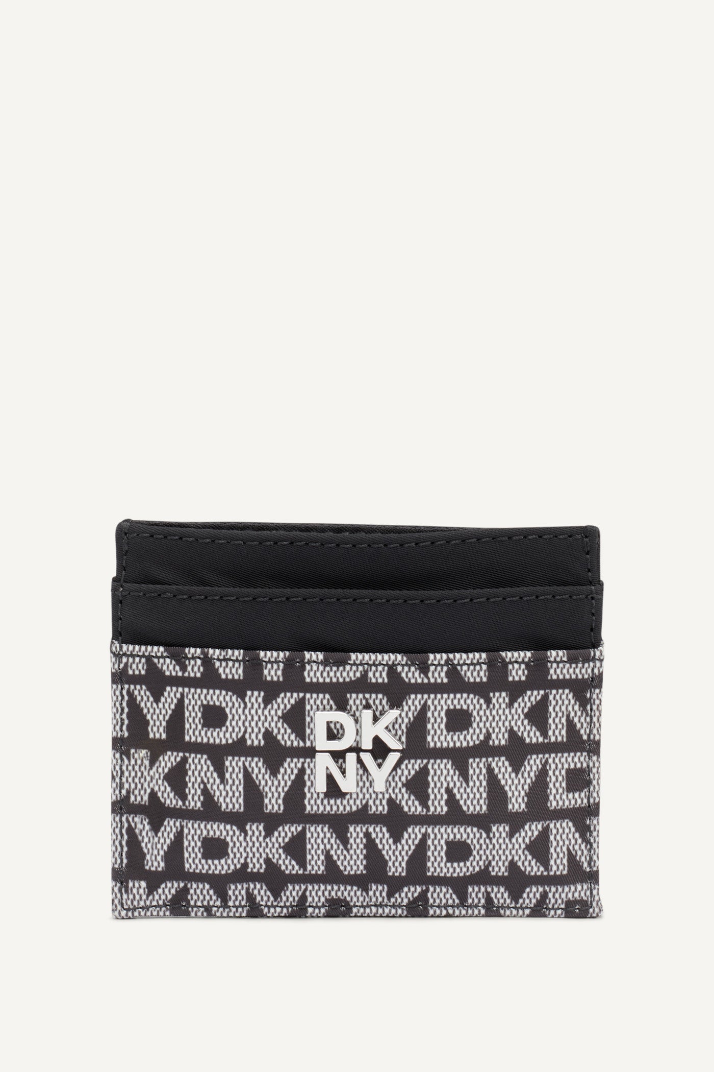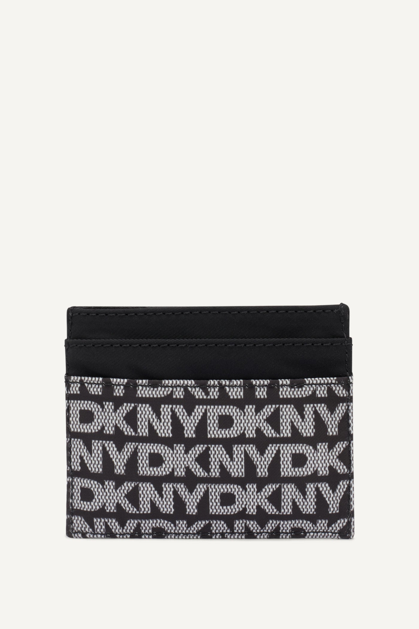 Sleek and versatile, the DKNY Jenny Cardcase in classic black offers streamlined organization for your essentials. Crafted with premium materials, this compact cardholder features multiple slots, subtle branding, and a slim silhouette-perfect for pockets, handbags, and on-the-go sophistication.