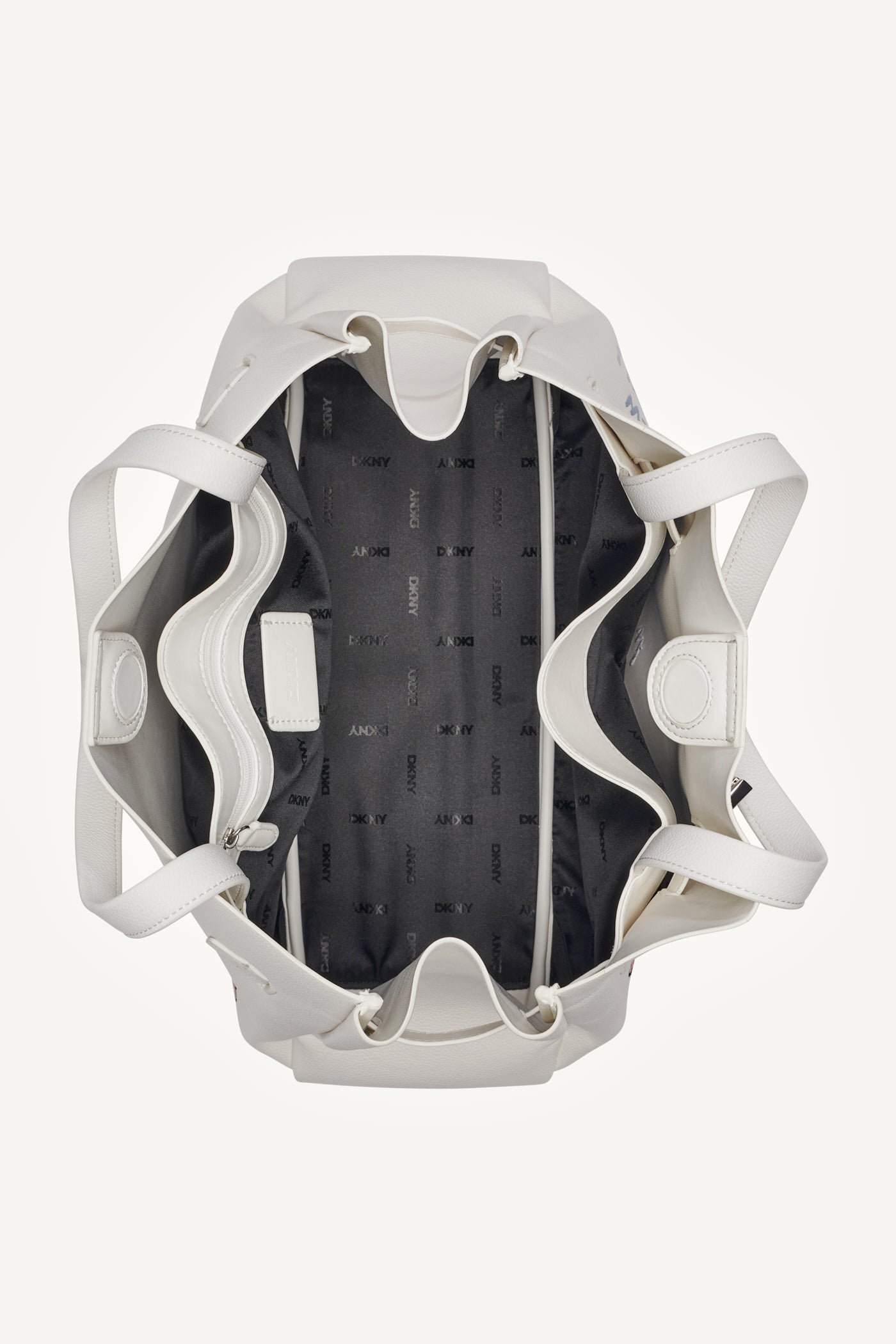 Elevate your style with the DKNY Bryar Large Satchel in crisp white. Crafted from durable polyurethane with chic polyvinyl chloride trim, this sophisticated top handle bag offers ample space, sleek structure, and versatile elegance perfect for workdays or weekend outings. Item ID: R61DAK43MMW