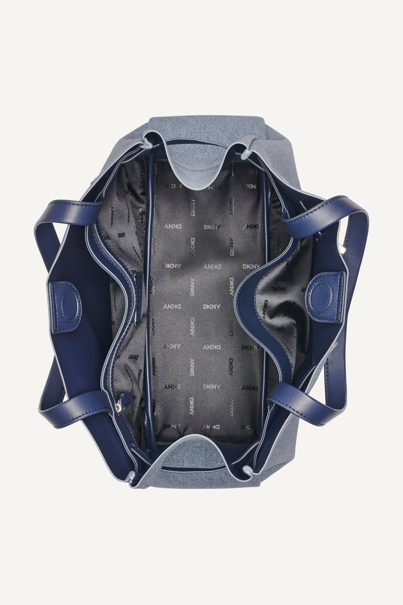 Elevate your style with the DKNY Bryar Large Satchel in striking blue. Crafted from durable 100% polyurethane, this top handle bag features spacious compartments and a chic silhouette, perfect for everyday sophistication or stylish weekend outings. A must-have accessory.