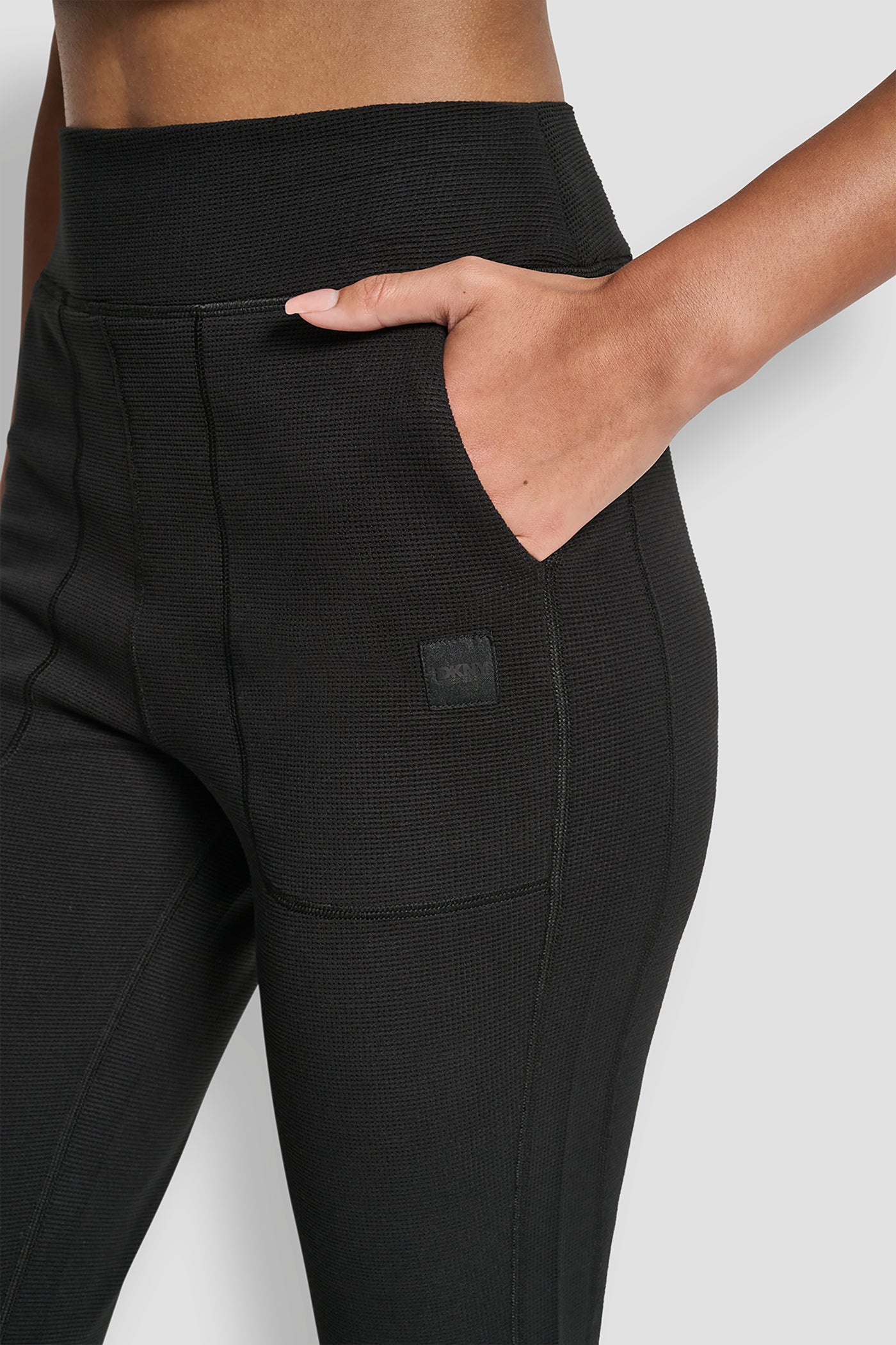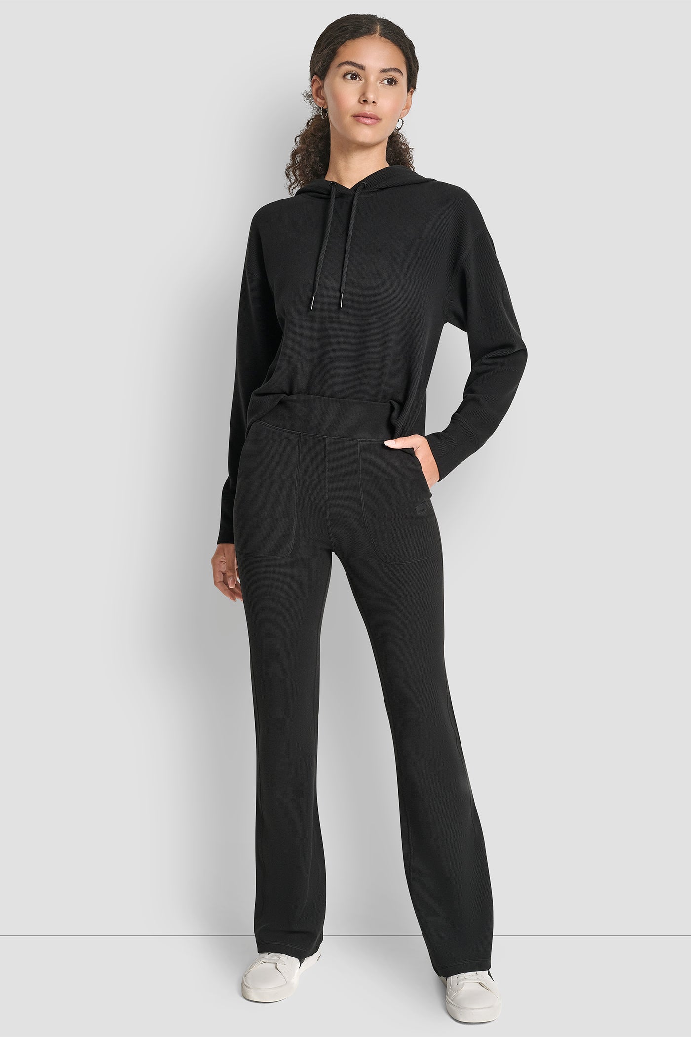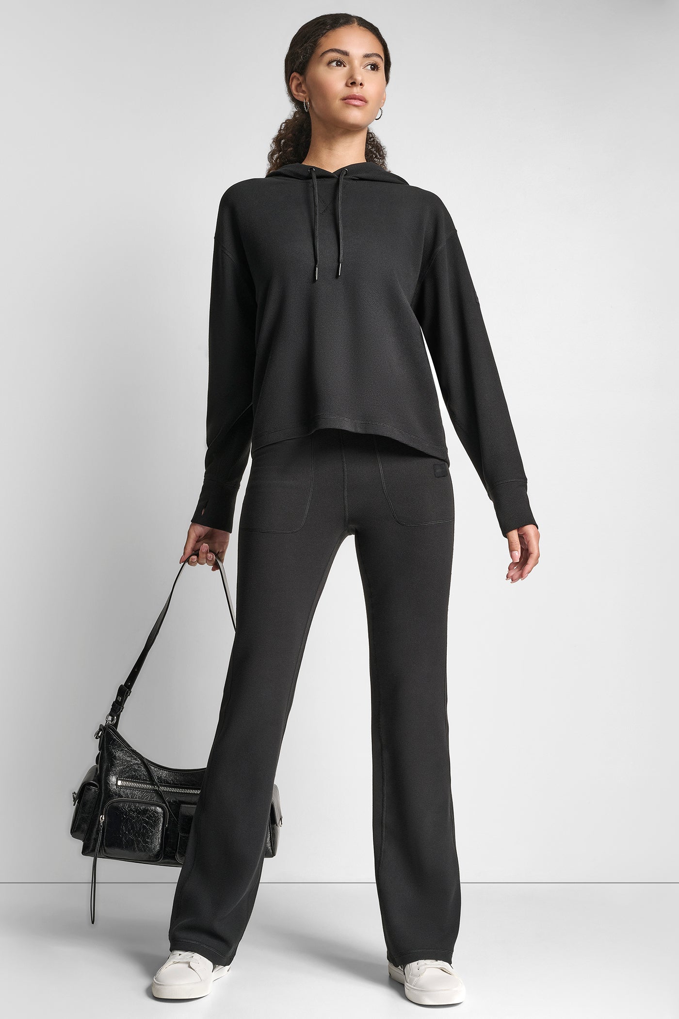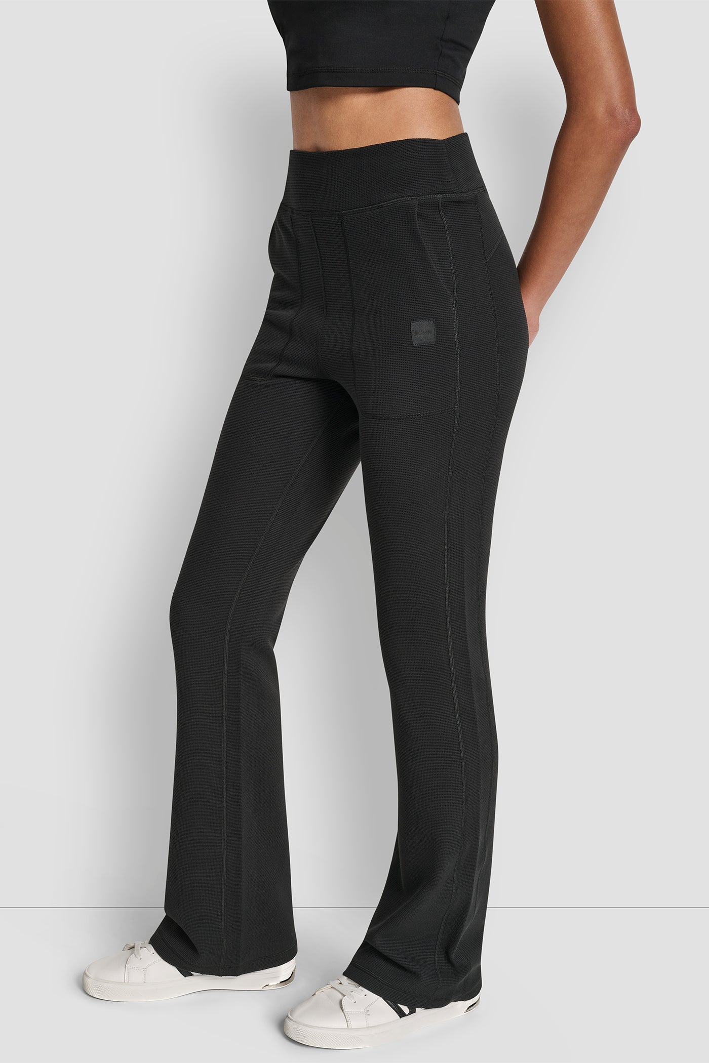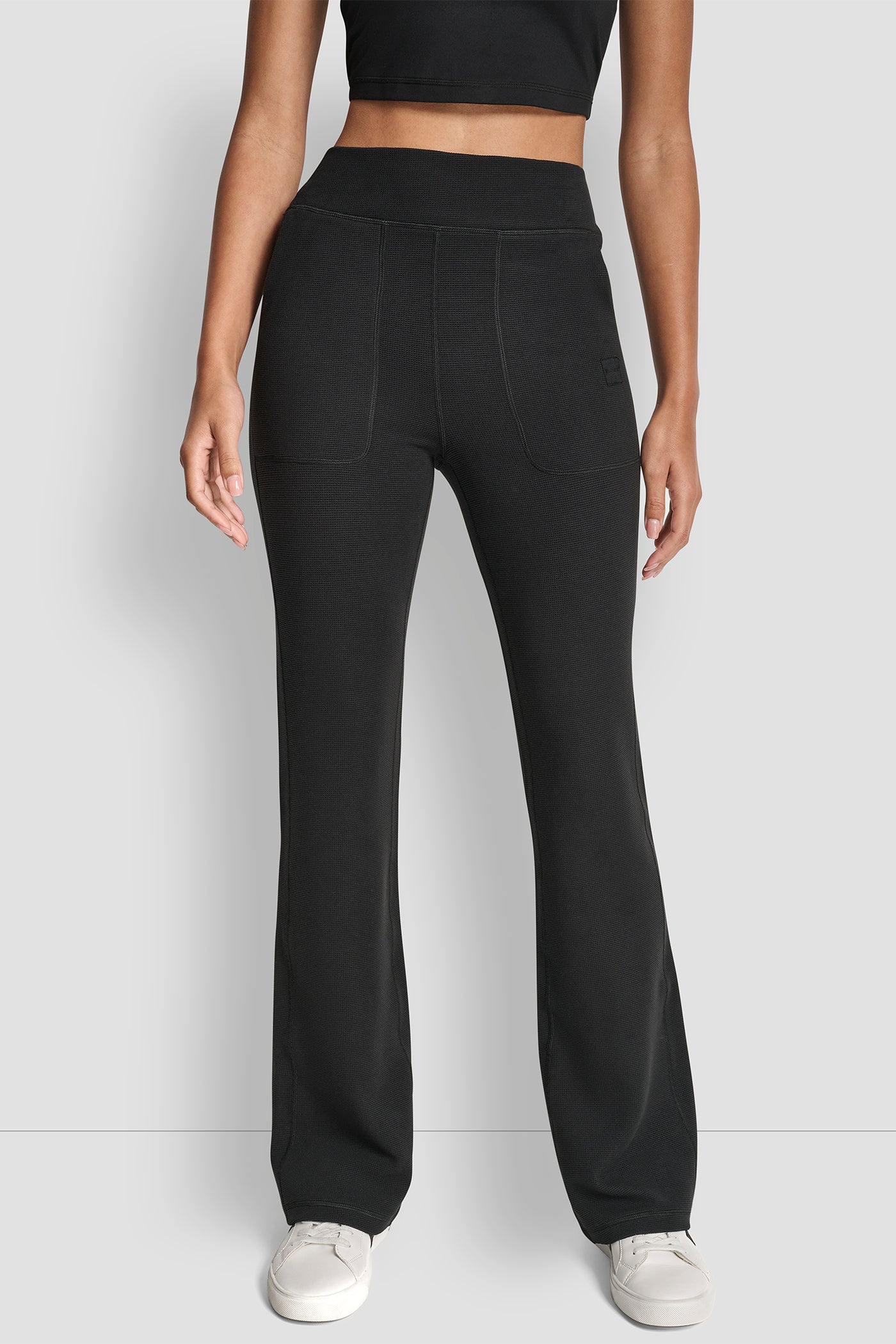 Elevate your style with DKNY's TRNSND THMRL HW FLAR pants in classic black. Featuring a flattering high waist and modern flared silhouette, these versatile pants offer both comfort and sophistication perfect for any occasion, from professional to casual.