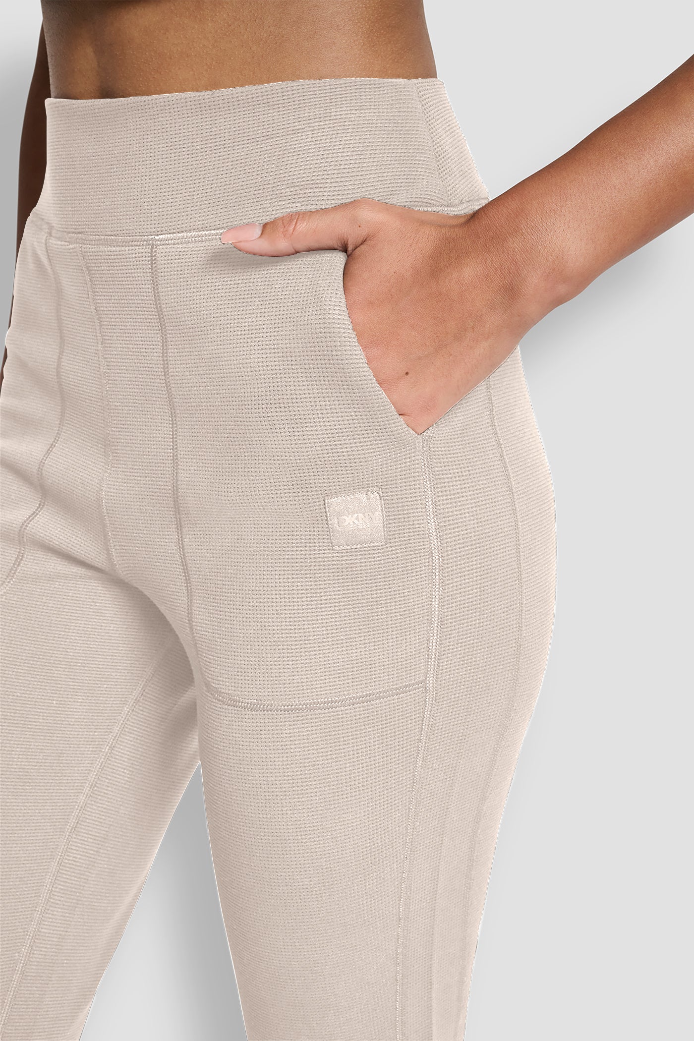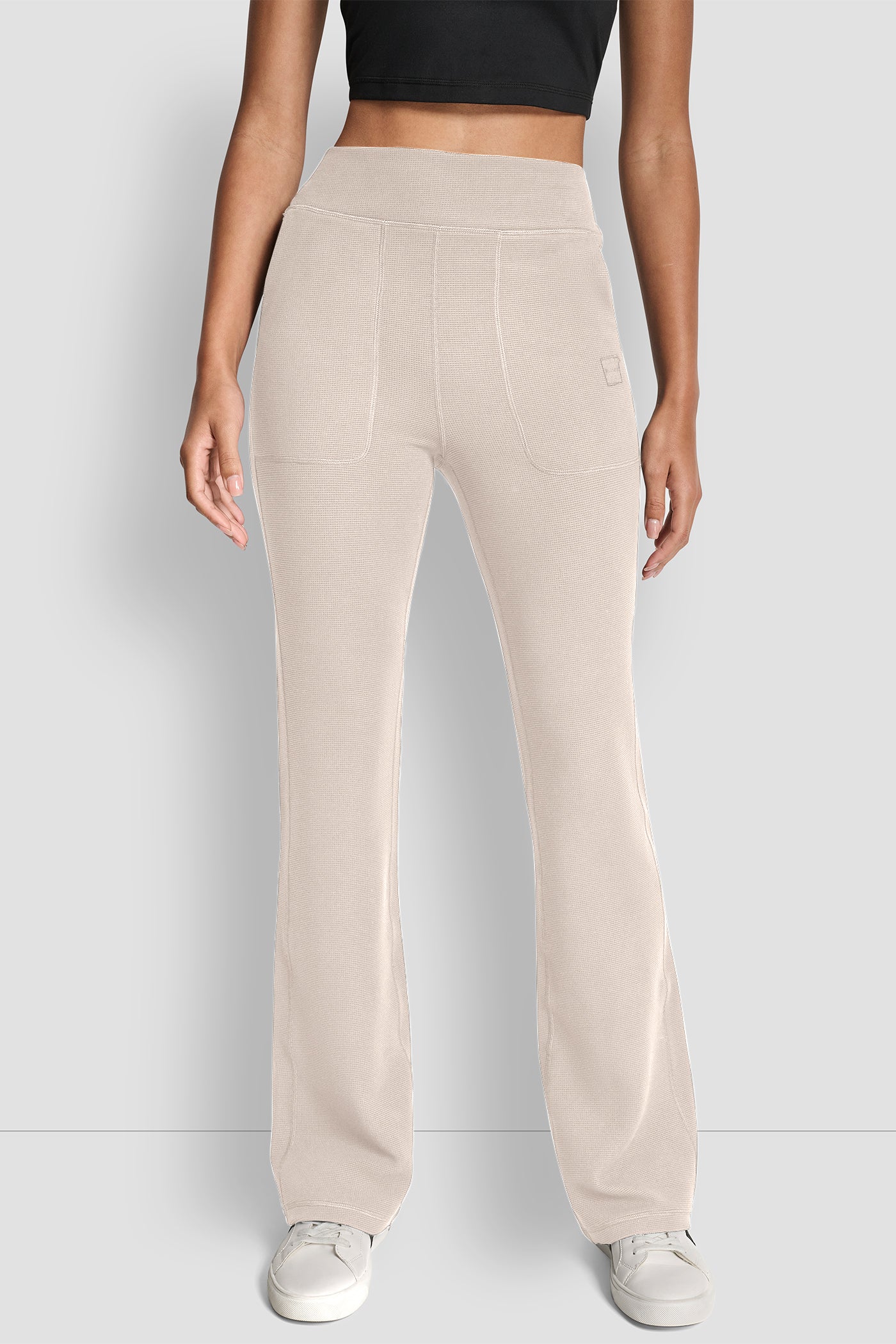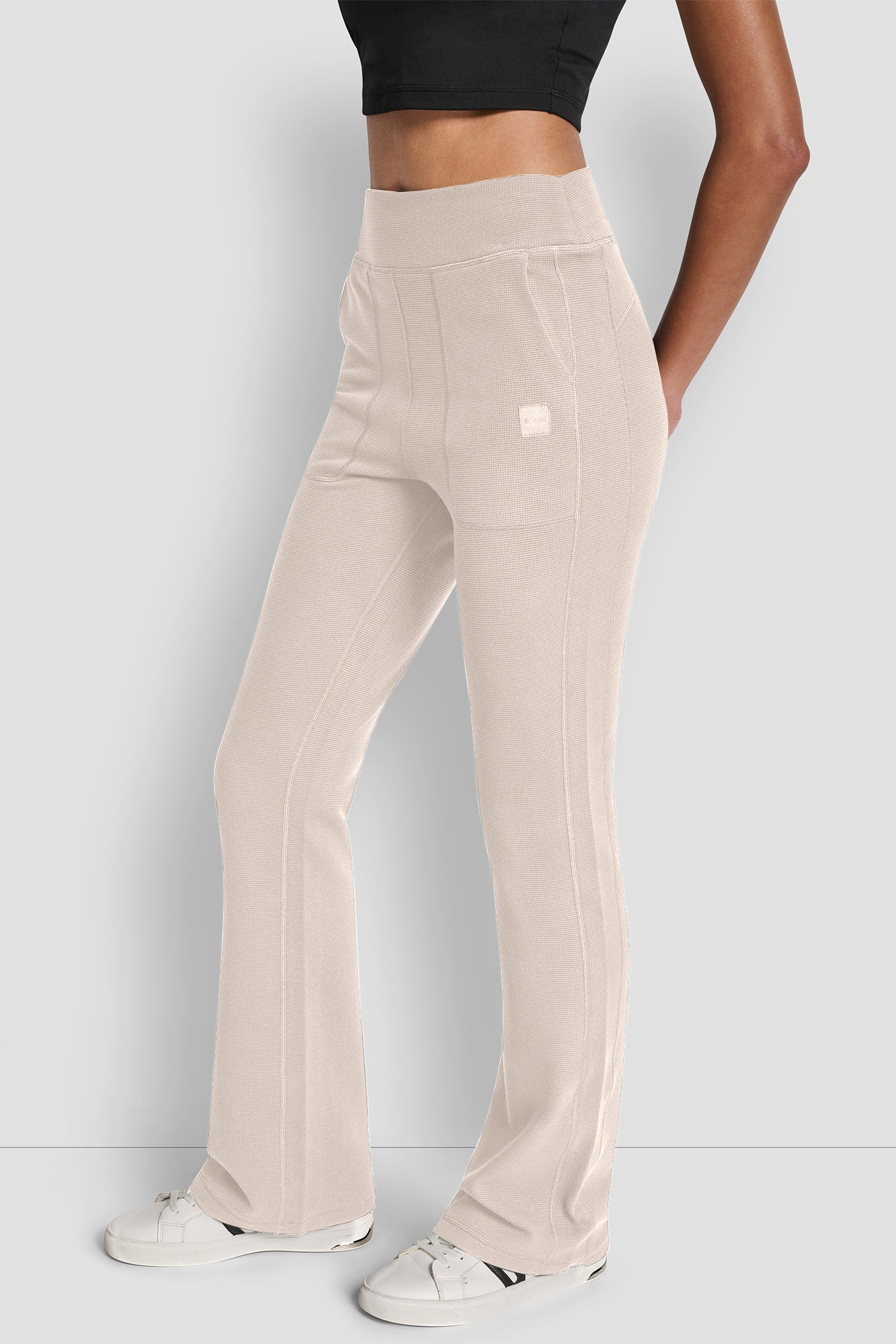 Elevate your everyday style with DKNY's TRNSND THMRL HW FLAR pants in classic beige. These high-waisted, flared pants offer comfort and contemporary flair, perfect for versatile styling from casual brunches to polished professional looks. Experience timeless sophistication with every wear.