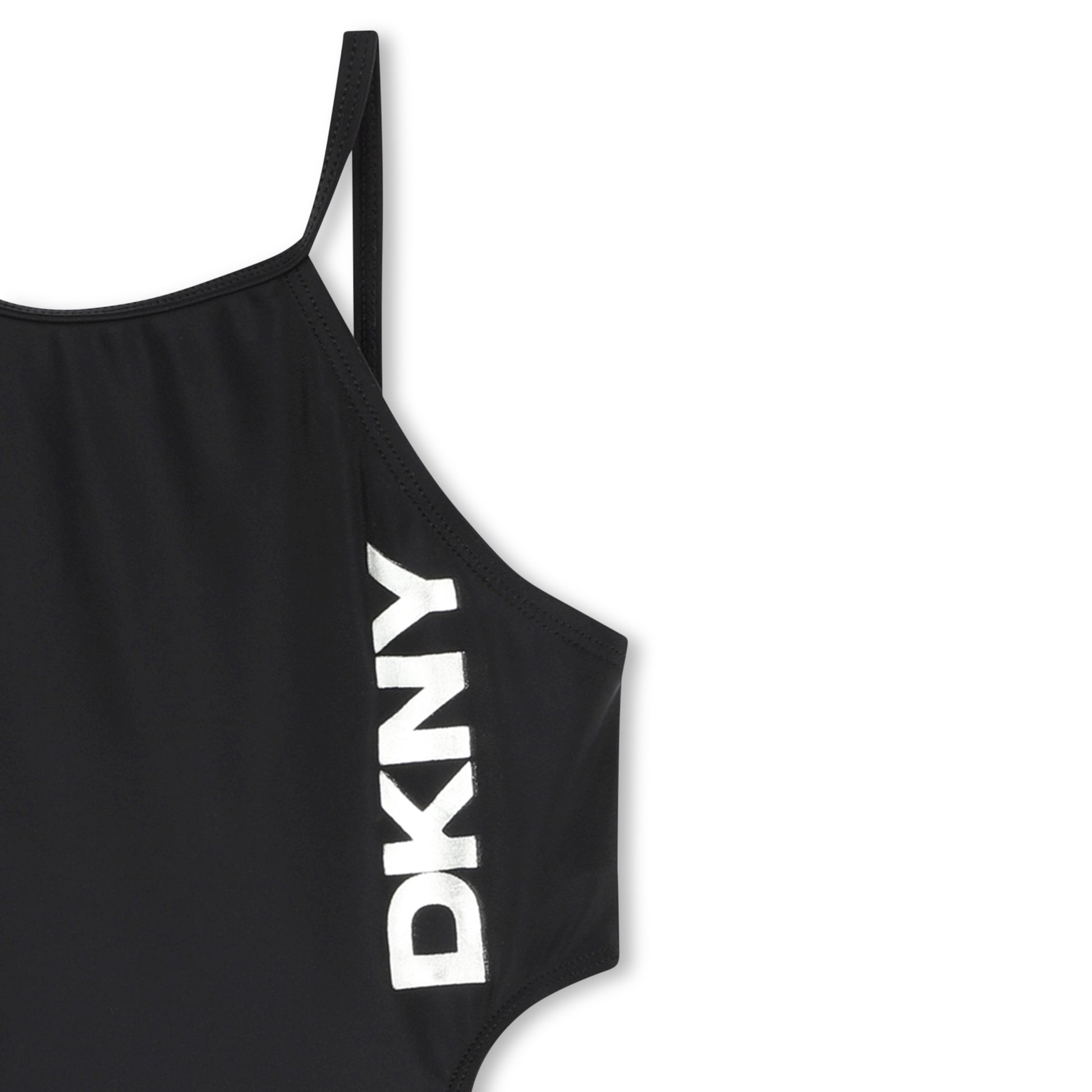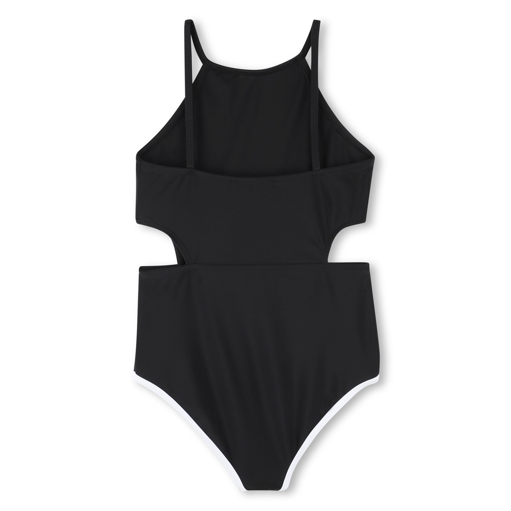 This one-piece swimsuit is crafted from a blend of 80% polyamide and 20% elastane, featuring a silver branded illustration on the front.