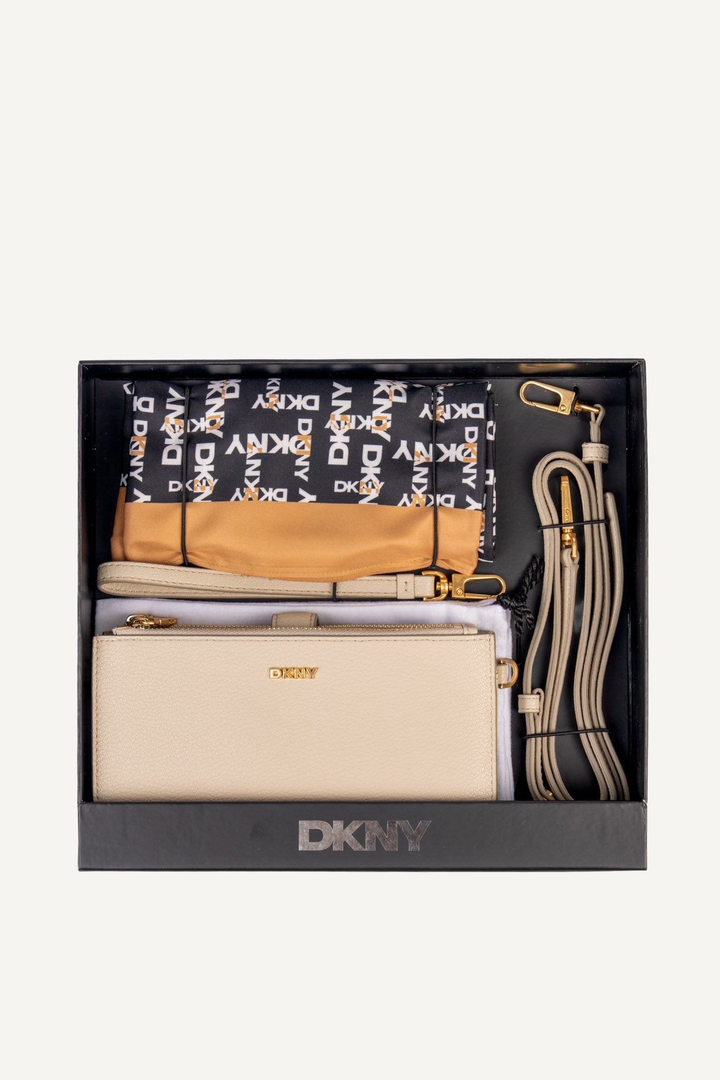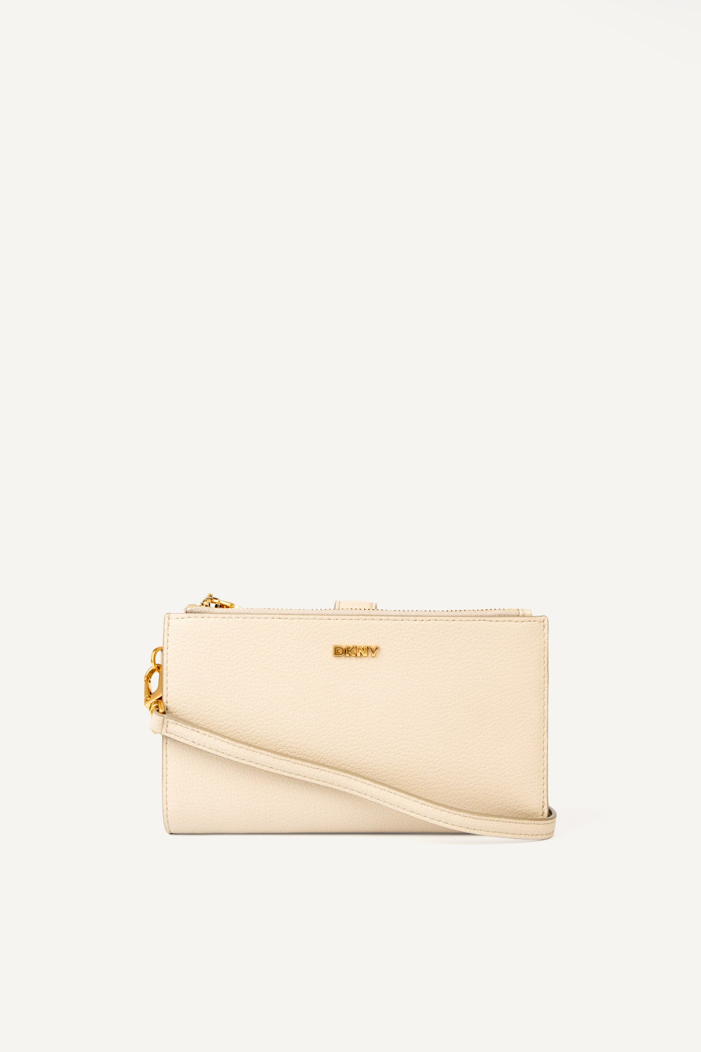 Effortlessly chic, the DKNY PAIGE WALLET ON A STRAP in light taupe fuses style with functionality. Wear it crossbody or carry as a wallet multiple compartments keep essentials organized. A versatile accessory perfect for day or night sophistication.