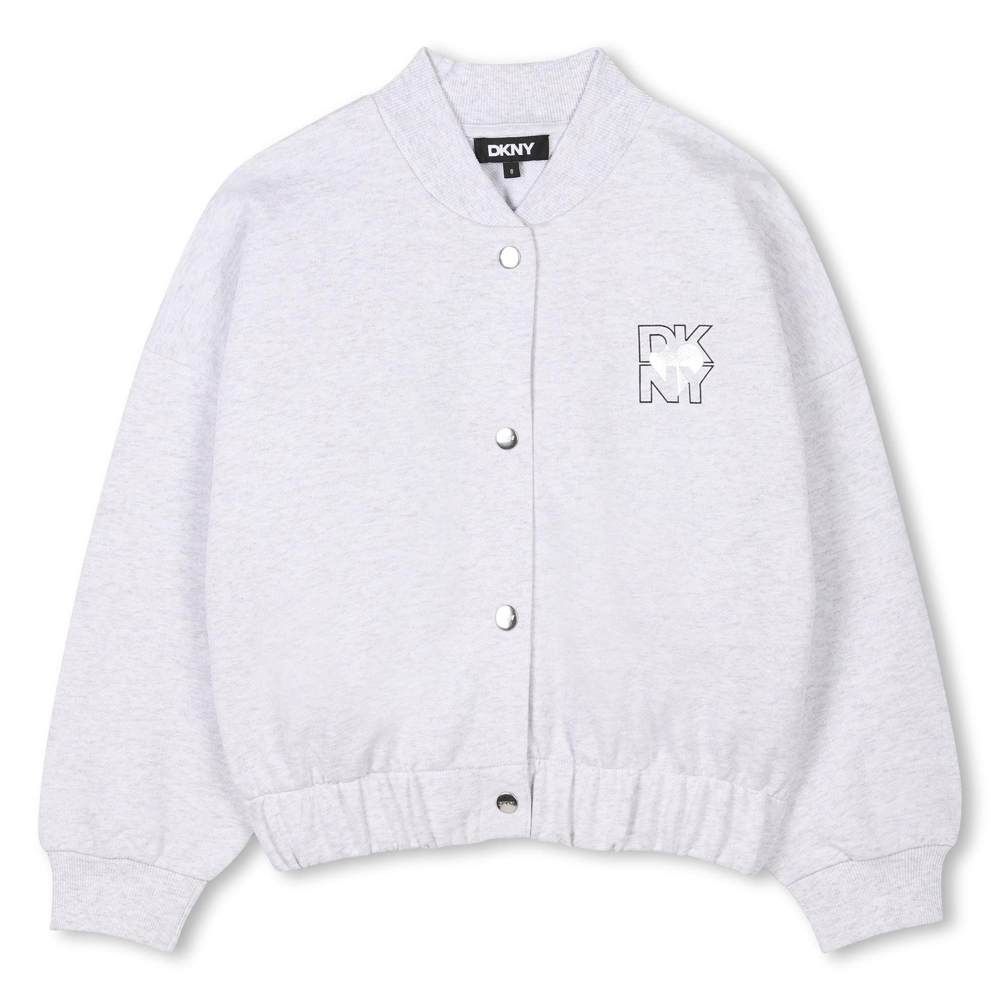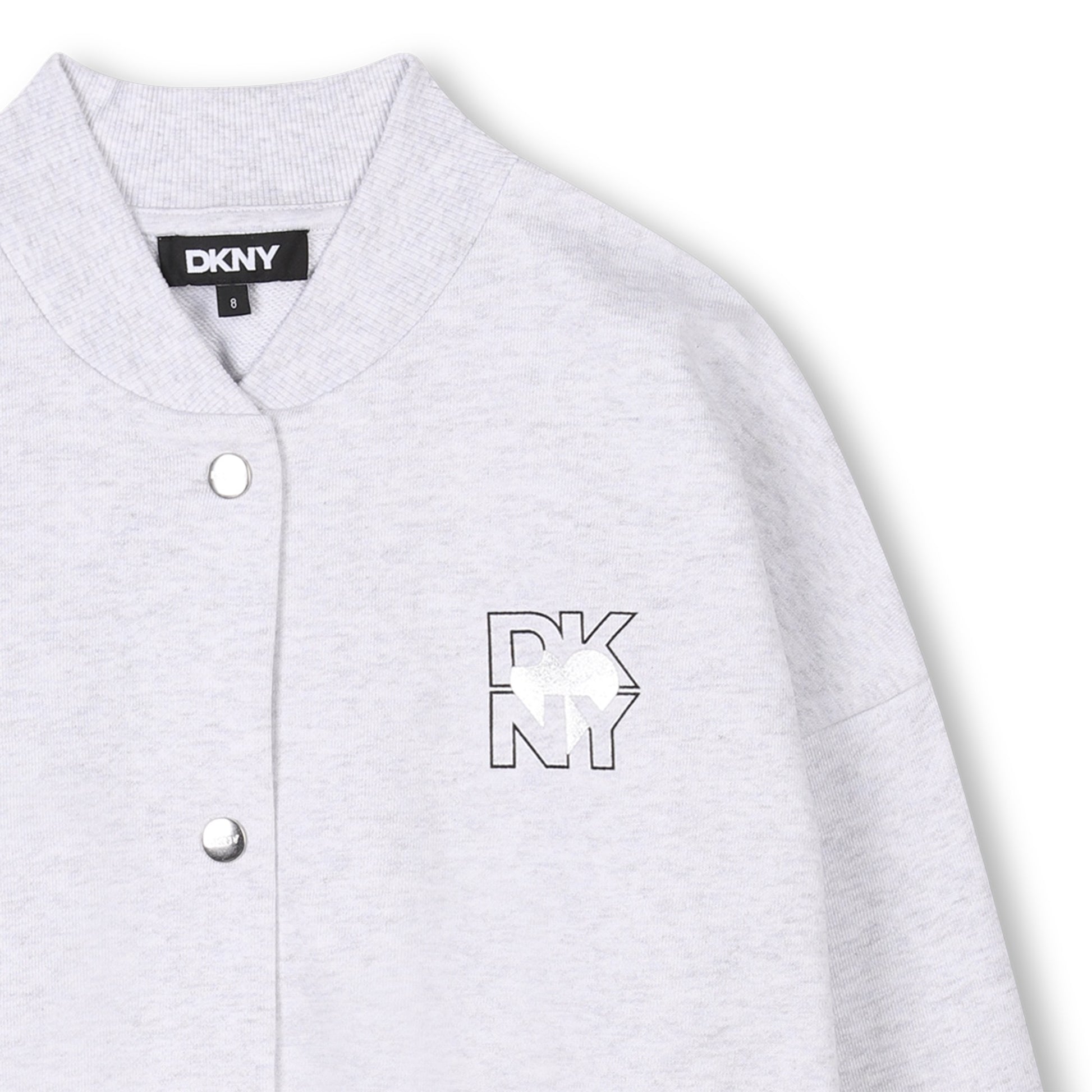 This cardigan is made from cotton French terry and features an elasticated hem with snap fasteners. It displays a branded illustration on the chest and is part of the HEART OF NEW YORK CAPSULE STYLE, inspired by the adult collection.